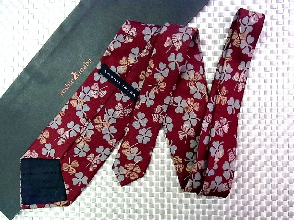 【在庫処分セール】●特売●FK8461●ヨシエイナバ【葉っぱ クローバー 植物 柄】ネクタイ●
