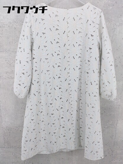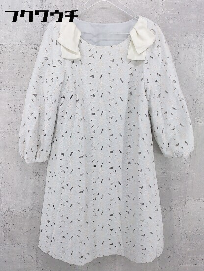 ◇ couture brooch クチュール ブローチ anatelier 花柄 刺繍 長袖 膝丈 ワンピース サイズ40 ライトブルー レディース