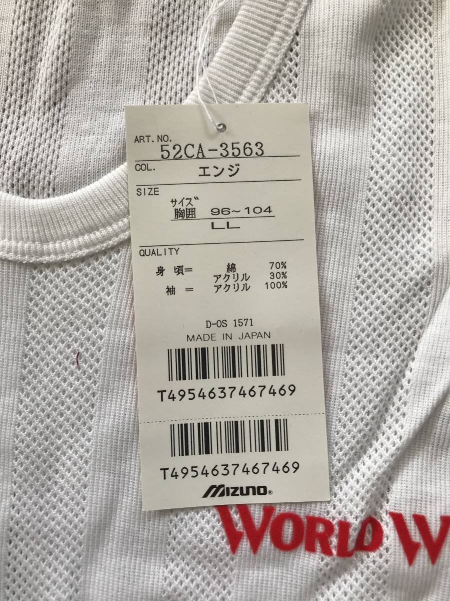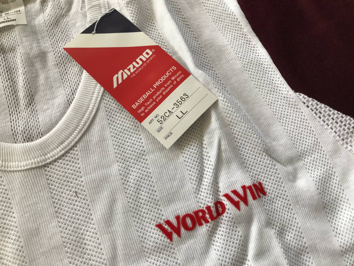 当時物 未使用 デッドストック Mizuno ミズノ WORLD WIN 野球アンダーシャツ 半袖 U首 品番:52CA-3563 サイズ:LL  HF3906