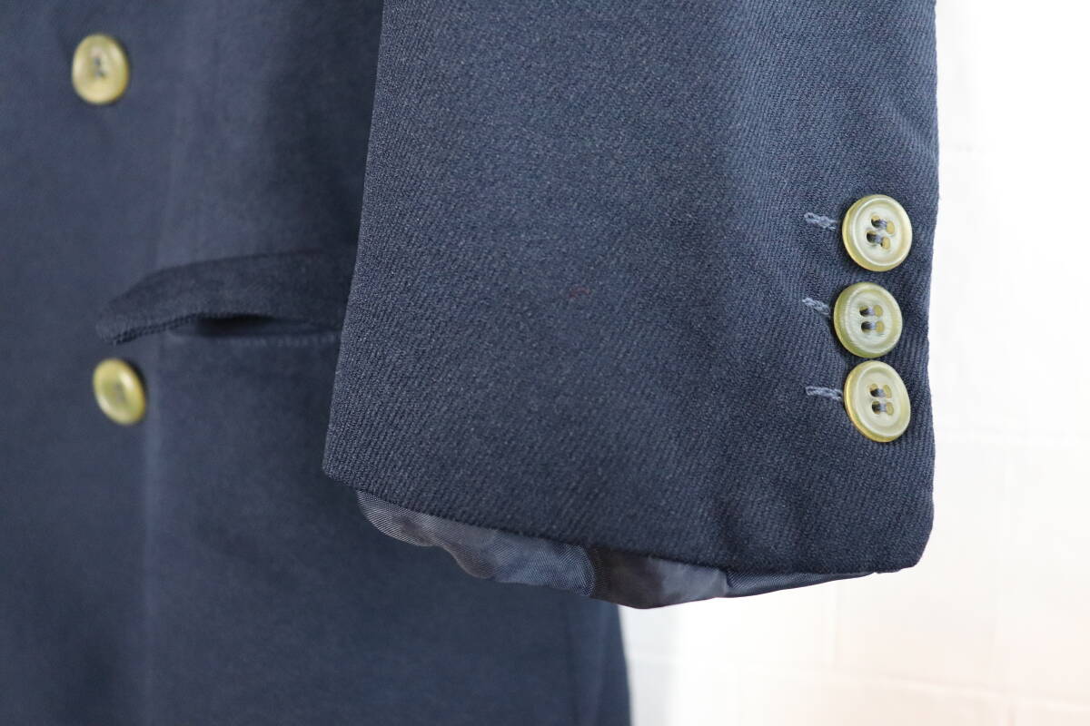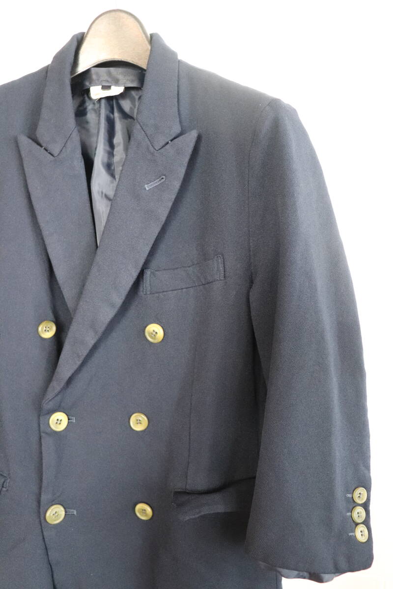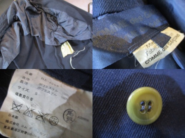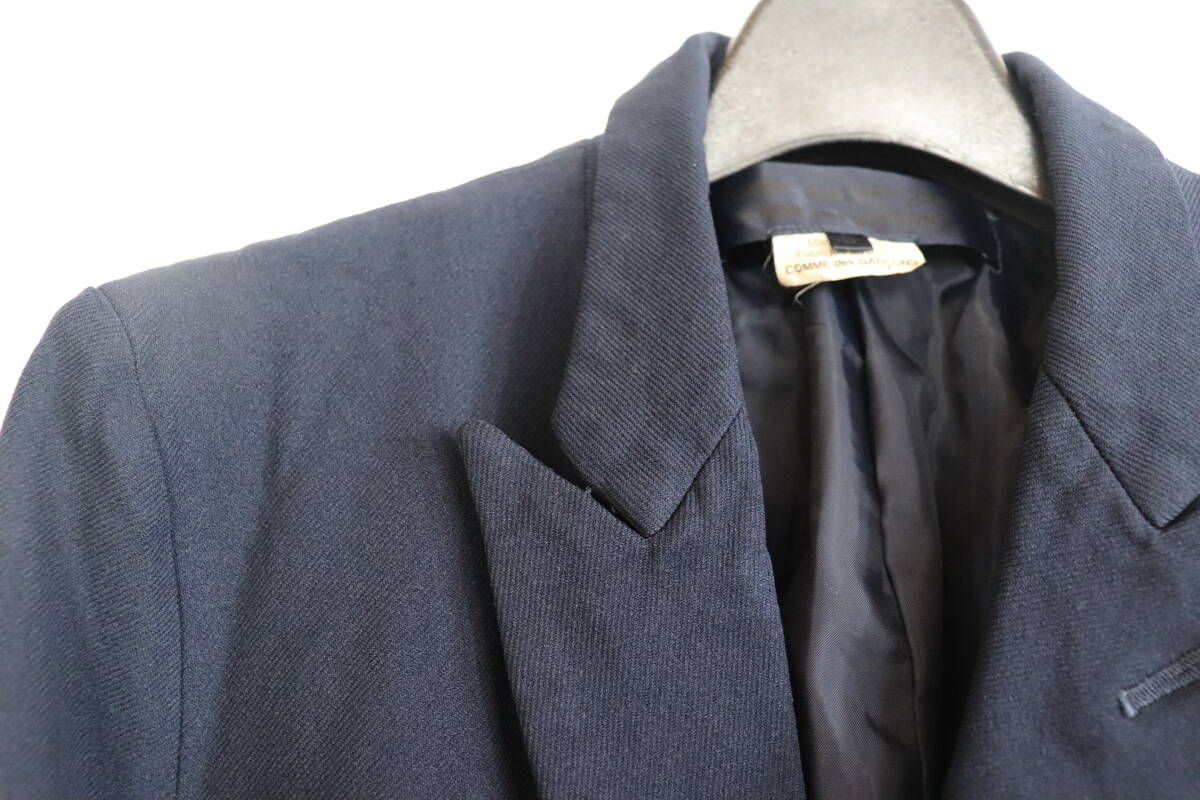 即決 COMME des GARCONS コムデギャルソン コムコム ポリエステルジャージ素材 縮絨加工 ピークドラペル ダブルジャケット レディース S 紺