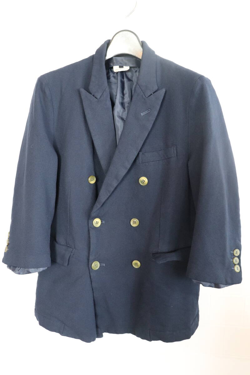 『送料レターパック対応可能  COMME des GARCONS COMME des GARCONS    AD2009    ポリジャージ素材縮絨加工半端袖ダブルブレストテーラードジャケット   レディースSサイズ   ネイビー系』