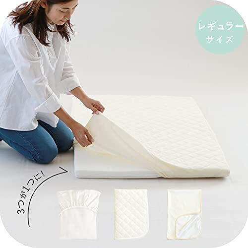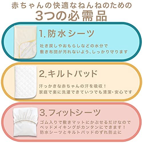 ・ホワイト ・1枚で3役!これひとつでOK70×120cmベビー布団サイズのフィットシーツ1枚で防水シーツ・キルトパッド・フィットシーツの役割を果たすからベッドメイキンやお洗濯ががとっても楽に! 忙しいママも大助かりです♪