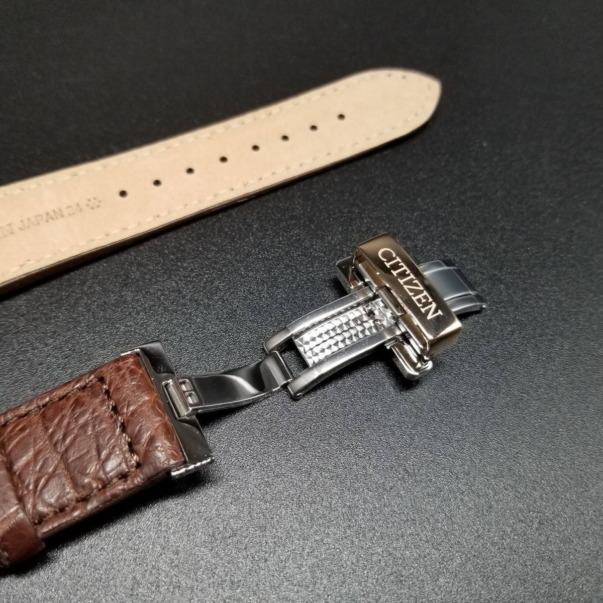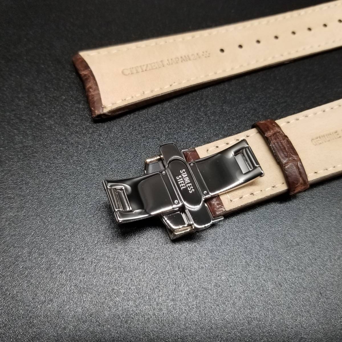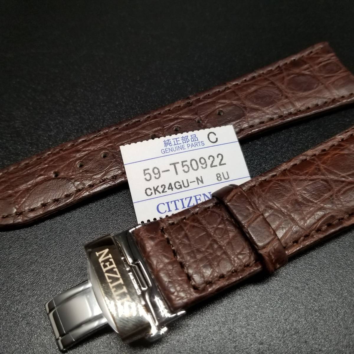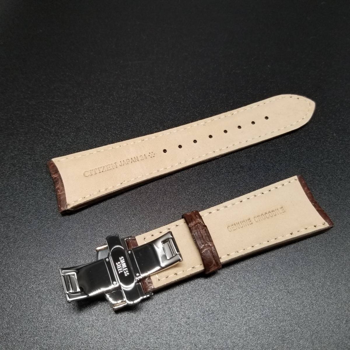 純正 Citizen シチズン Eco-Drive 24mm クロコダイル革 レザーバンド 茶 茶色 Dバックルタイプ 59-T50922