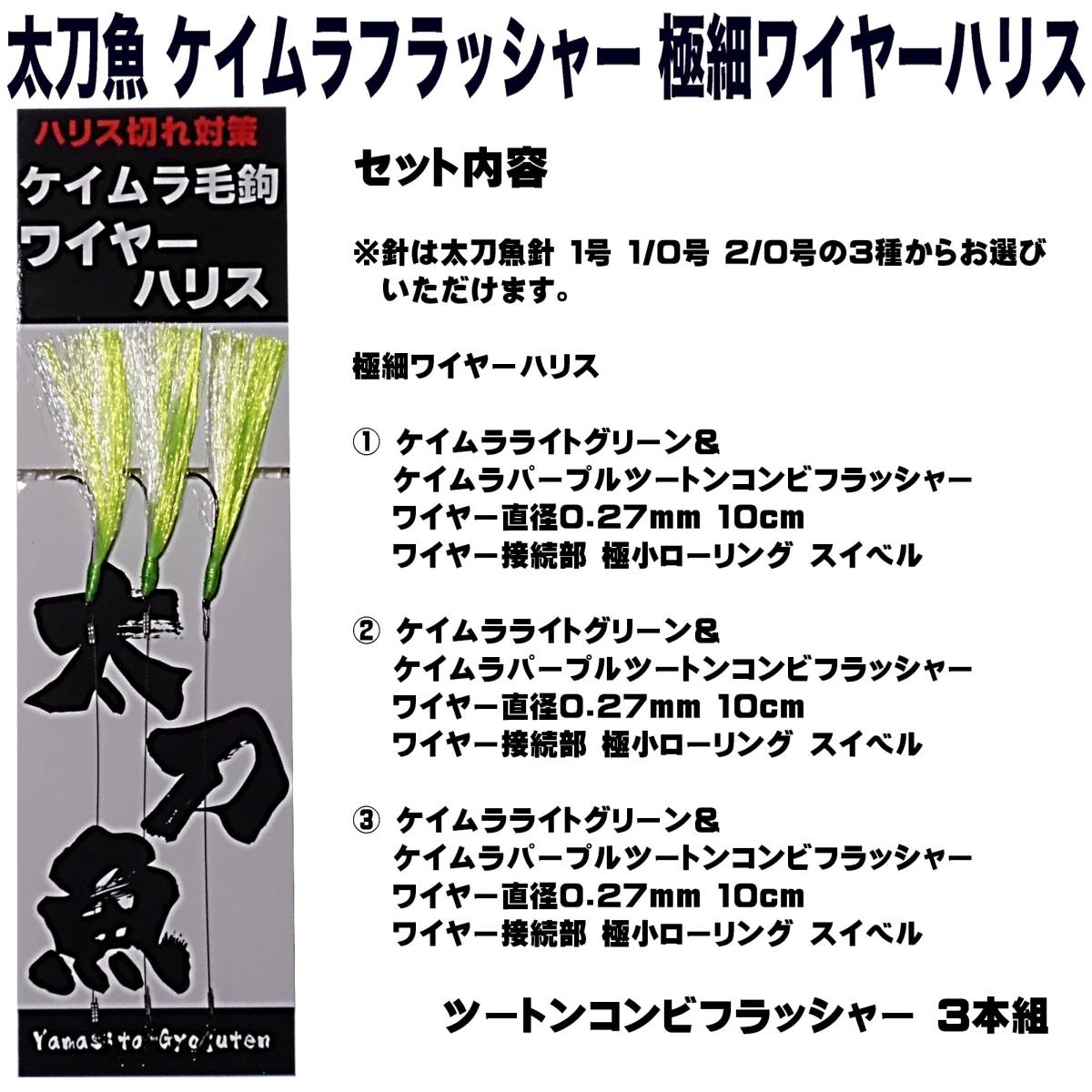 太刀魚 仕掛け 太刀魚仕掛け ケイムラライトグリーン&パープルコンビフラッシャー ワイヤー直径0.27mm 10cm 3本組 ワイヤーハリス