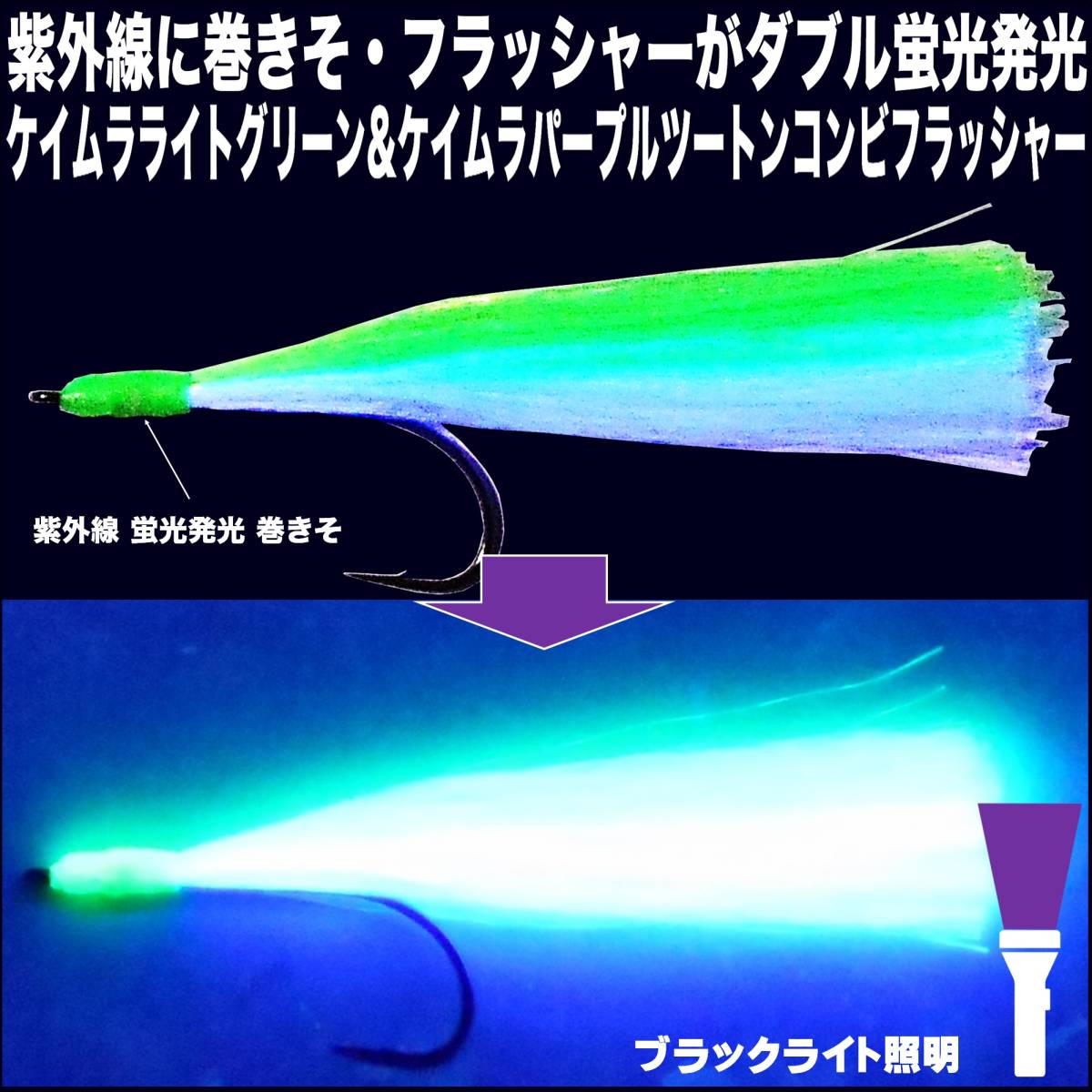紫外線 蛍光発光 ケイムラ ライトグリーン & 紫外線 蛍光発光 ケイムラ パープル ツートン コンビ フラッシャー