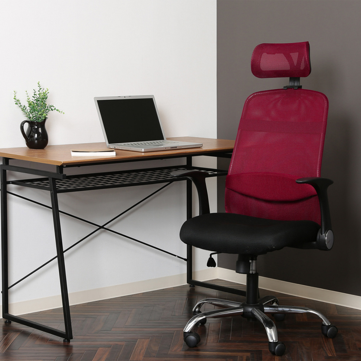 メッシュ アームアップチェア ヘッド付き レッド【新品】【送料無料】(北海道 沖縄 離島は別途送料)