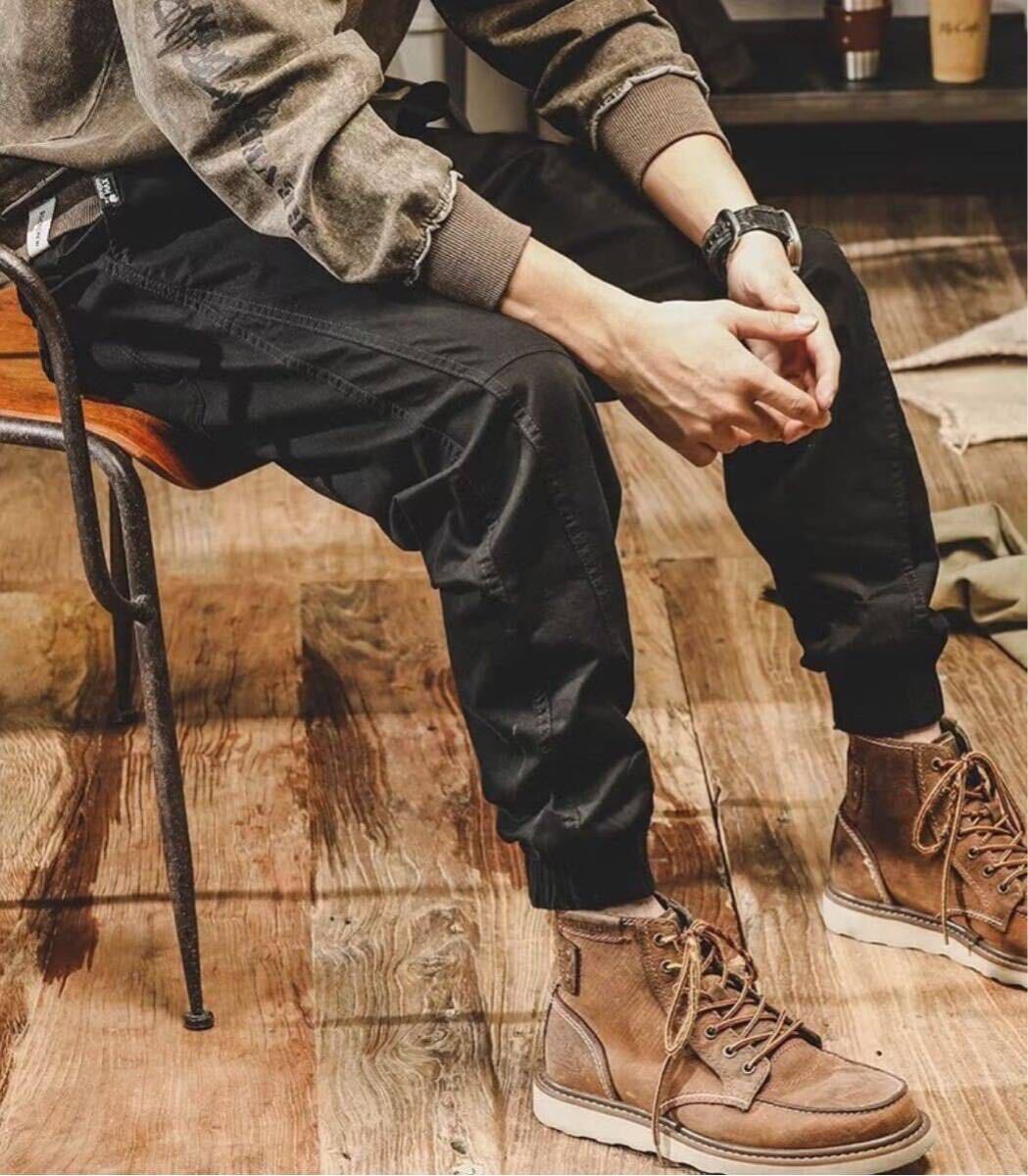 # ジョガーパンツ # テーパード # クロップド # ブラック # 黒 # 細身 # ウエストゴム # 調節紐 # カジュアル # アメカジ # オールシーズン