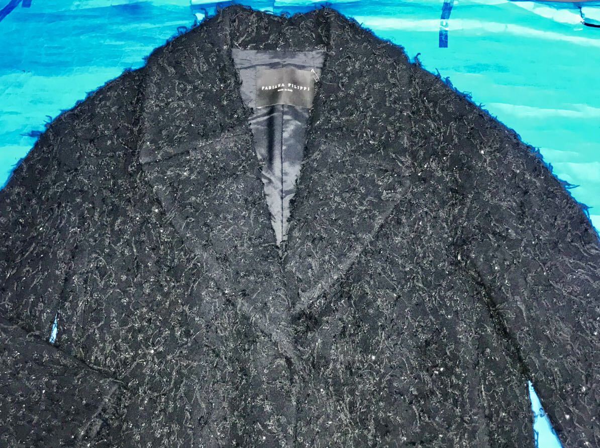 FABIANA FILIPPI★ファビアナフィリッピ★ラメと毛糸刺繍 ゴージャスデザインウールコート 40 ブラック★美品