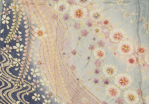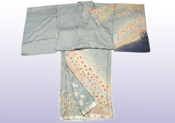 京有栖☆正絹☆お洒落訪問着☆未仕立て(仮絵羽)【桜・水模様柄/灰青系】新品☆12