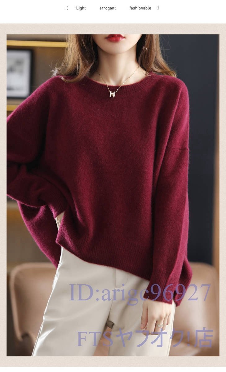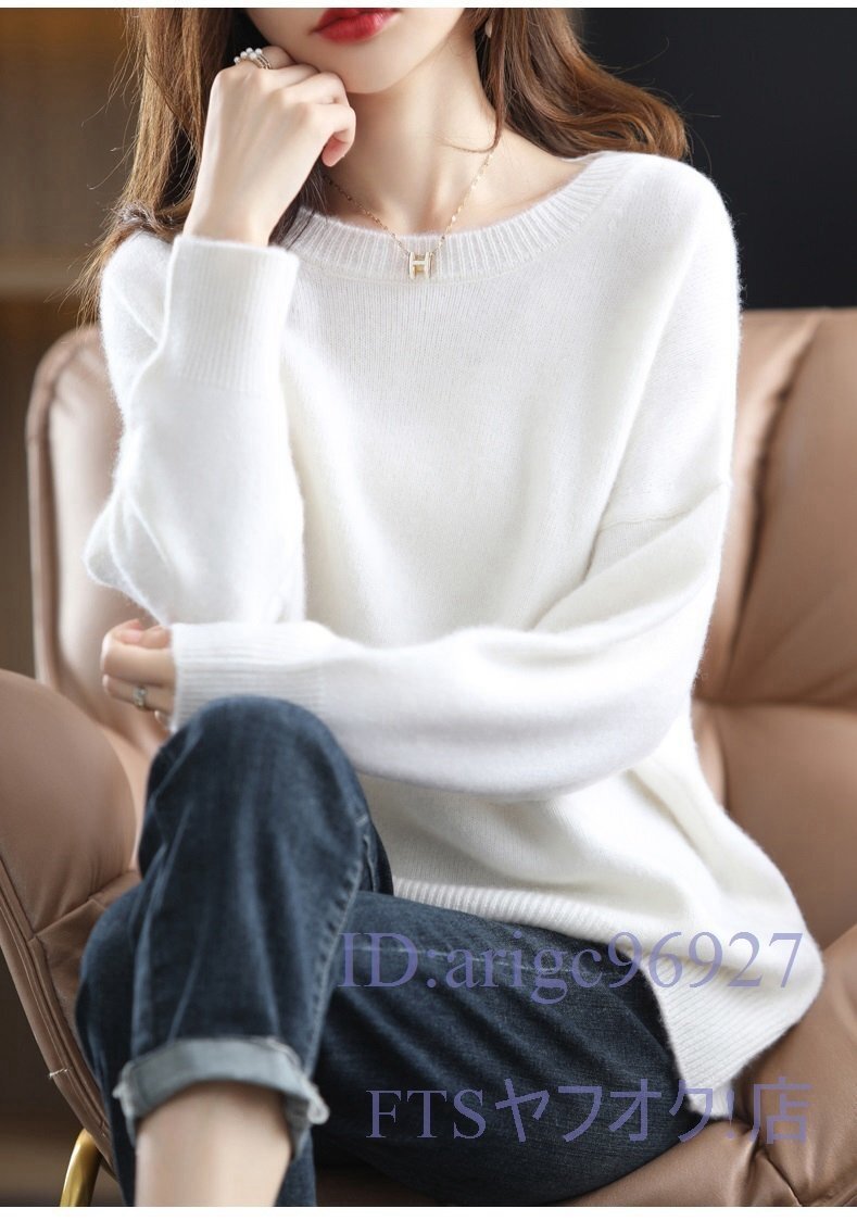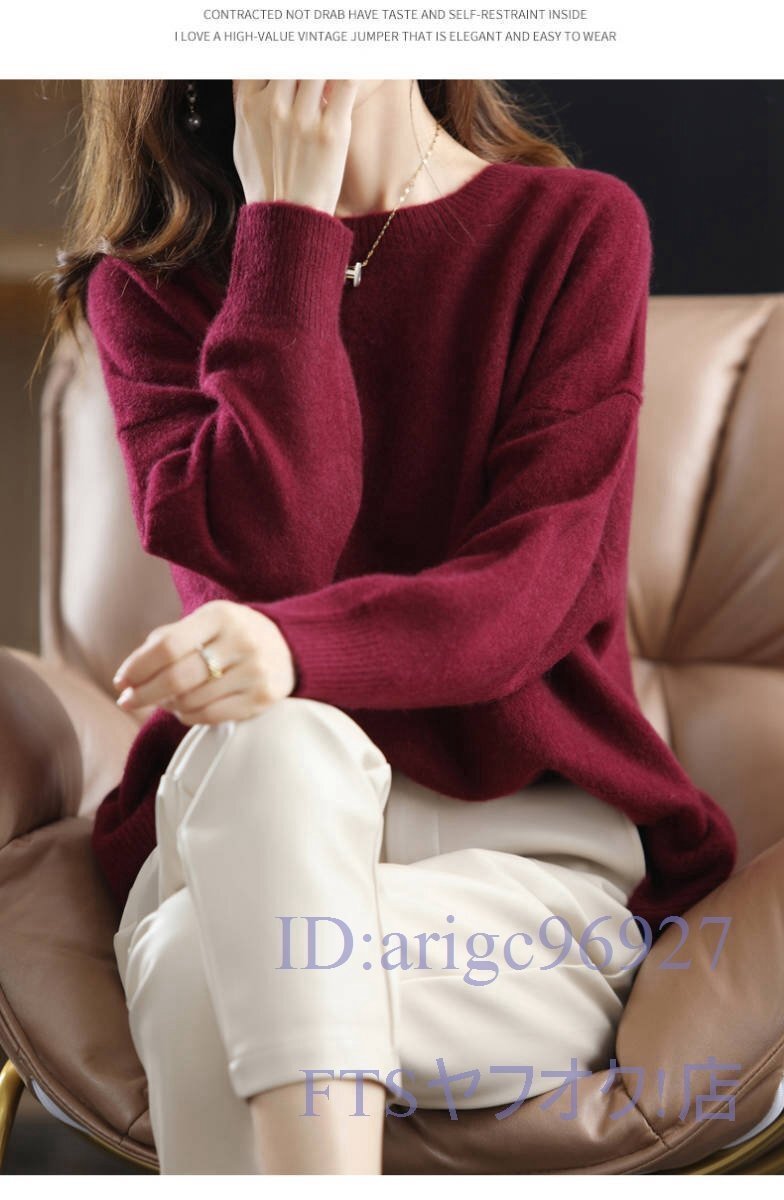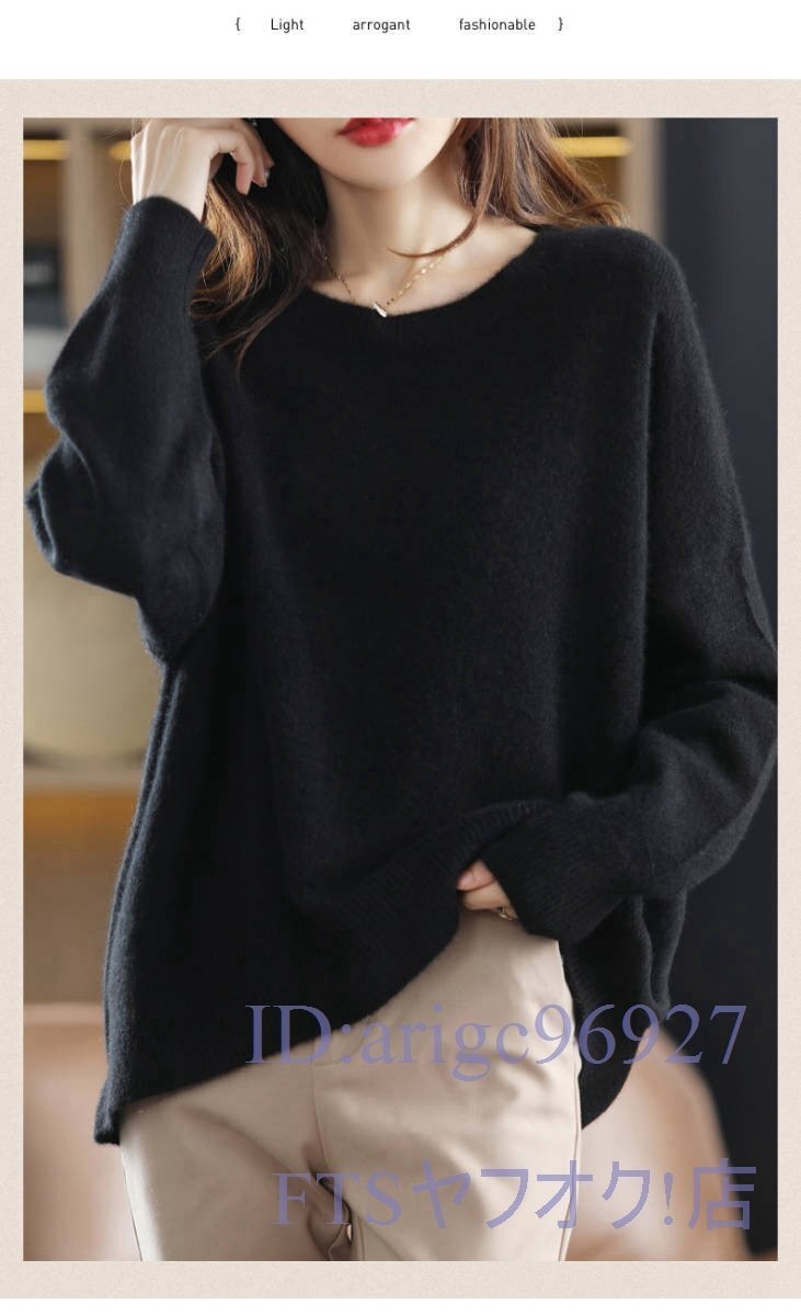 A0594☆新品ゆったり 20304050代 おしゃれ ミンクカシミヤ混 気質良い 柔らかい 暖かい トップス ルーズニットセーター*黒