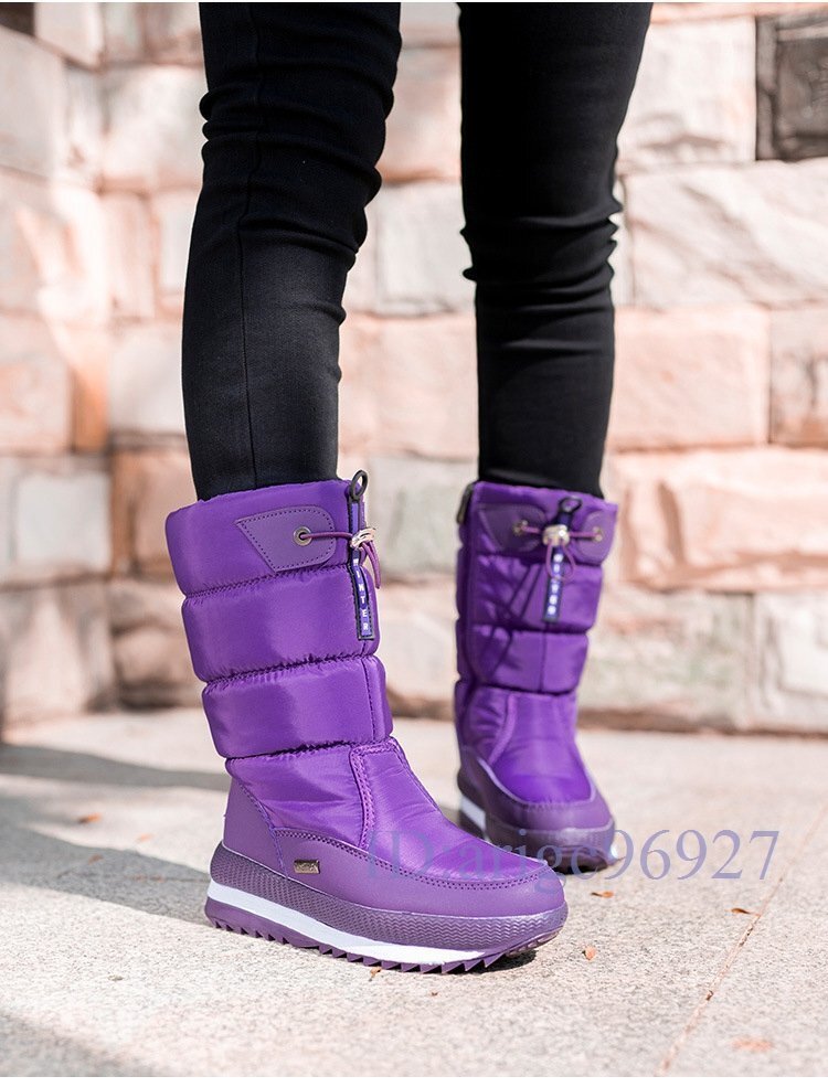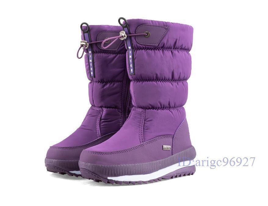 Y415☆新品レディース スノーシューズ ムートンブーツ スニーカー ウィンターブーツ 裏起毛 防水 防寒 防滑 綿靴 23~26cm 紫