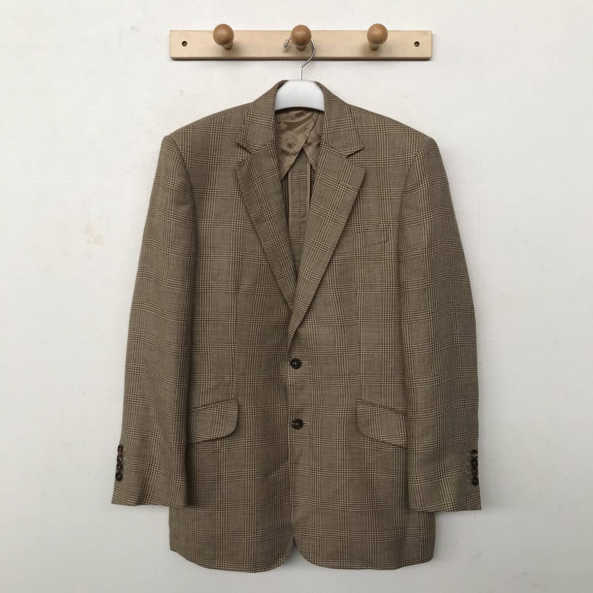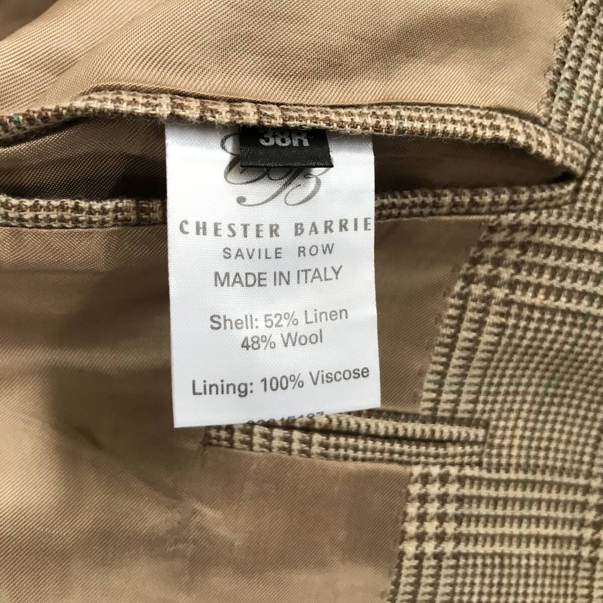 CHESTER BARRIE SAVILE ROW チェスター バリー セヴィル ロウ 伊製 リネン×ウール グレンチェック柄 背抜きジャケット 美品 size 38R