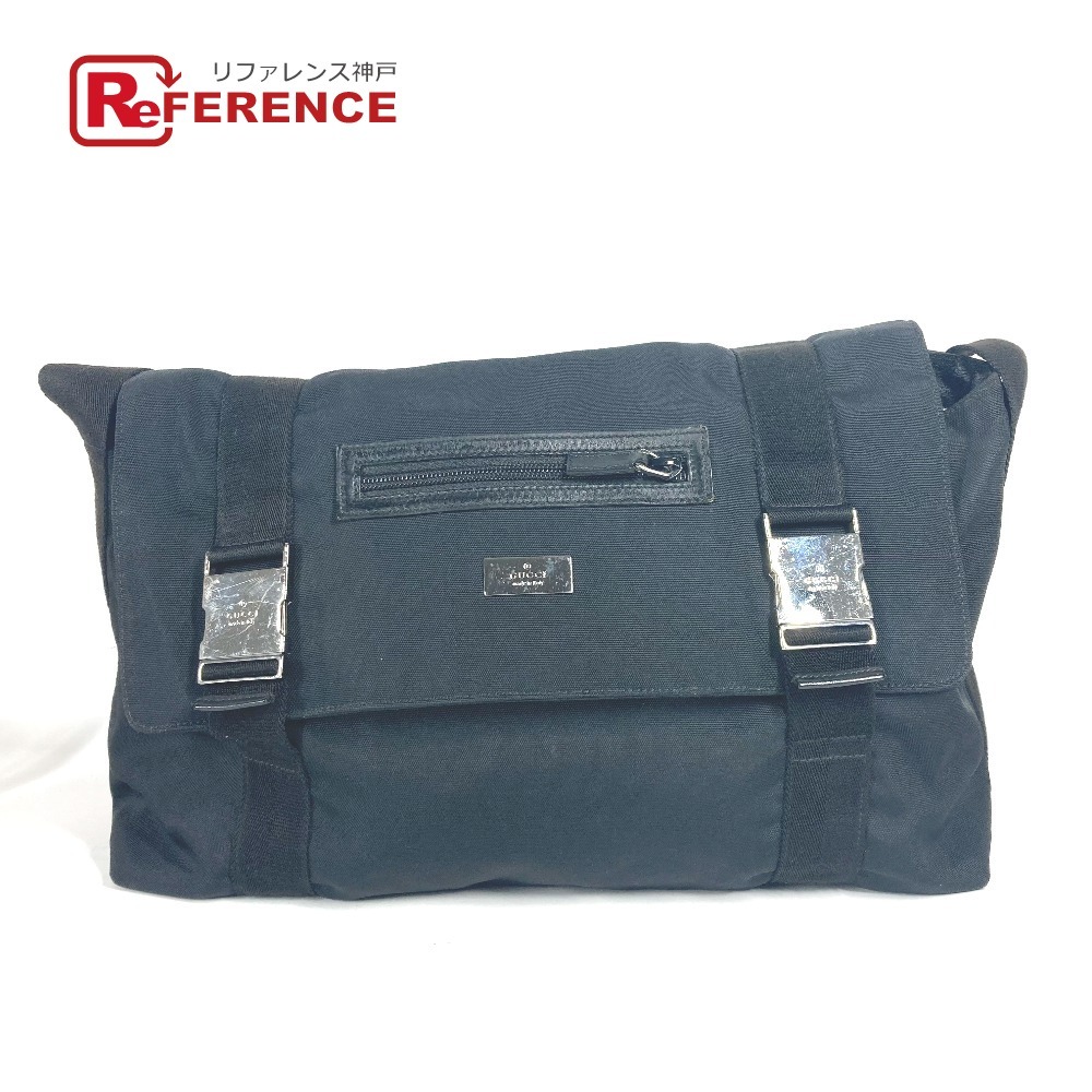 GUCCI グッチ 122374 ロゴ フラップ カバン ポシェット 斜め掛け メッセンジャーバッグ ショルダーバッグ ブラック ユニセックス【中古】