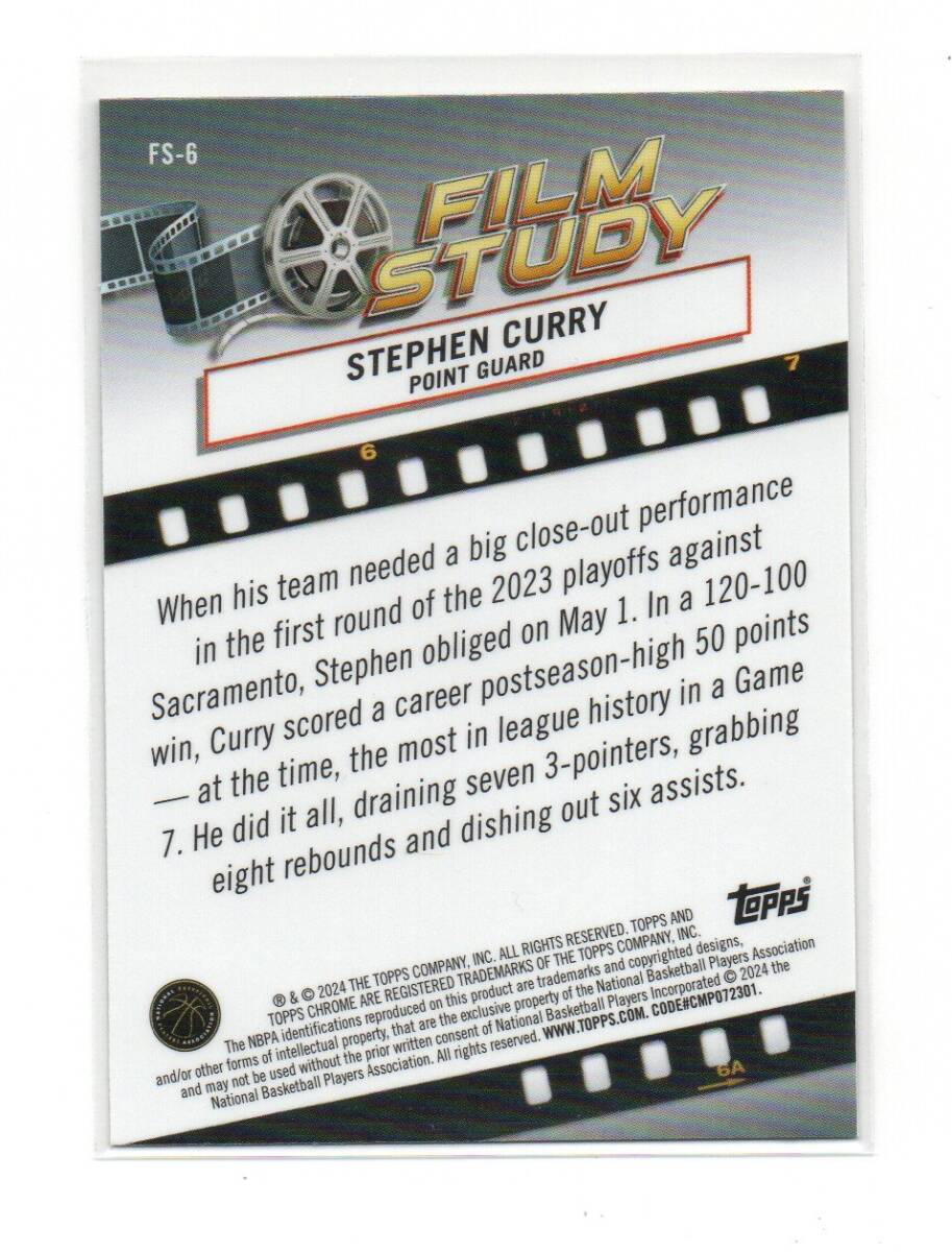 2023-24 Topps Chrome Basketball、カードNo.FS-6「STEPHEN CURRY」FILM STUDY Insert Blue Basketball Refractor Card