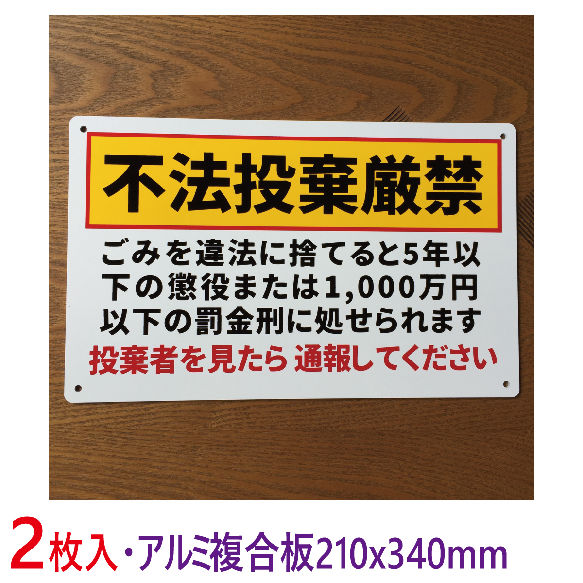 2枚入りアルミ樹脂板210x340mm不法投棄禁止看板注意喚起イラスト看板パーキングポイ捨て禁止不法侵入 不審者対策 パネル看板プレート日本製