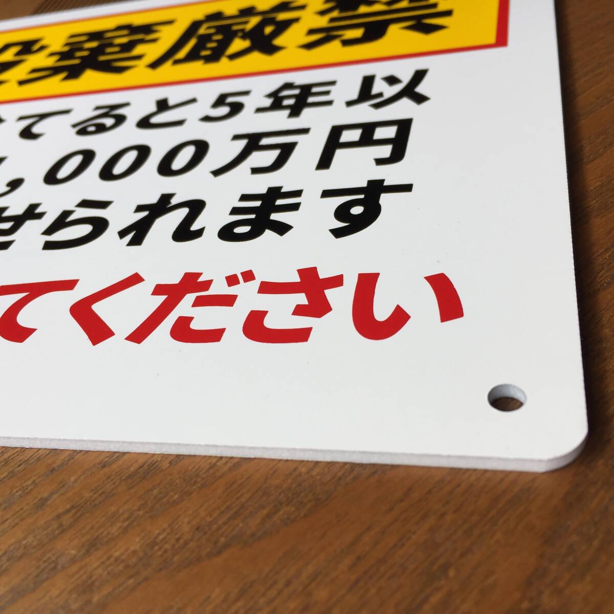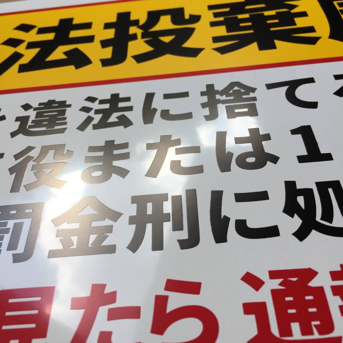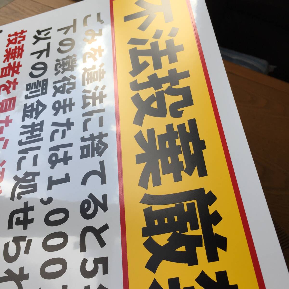 加工:シルクスクリーン印刷(屋外長期耐候インキ使用)、4角に5mm穴あけ済みで取付簡単、角がとがっていない安全な角丸仕上げ。