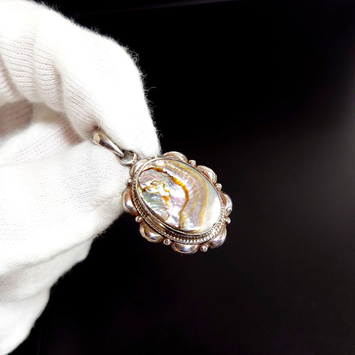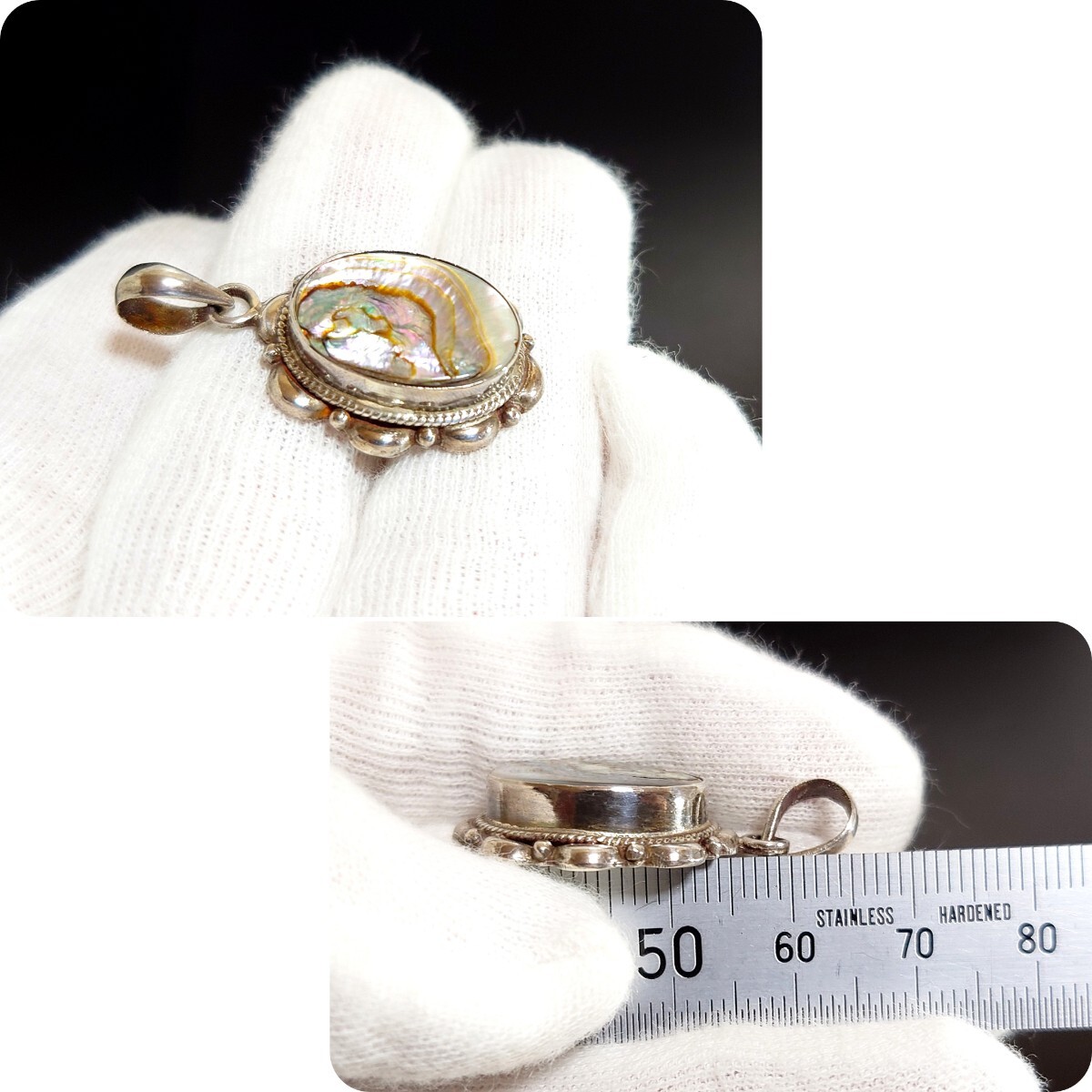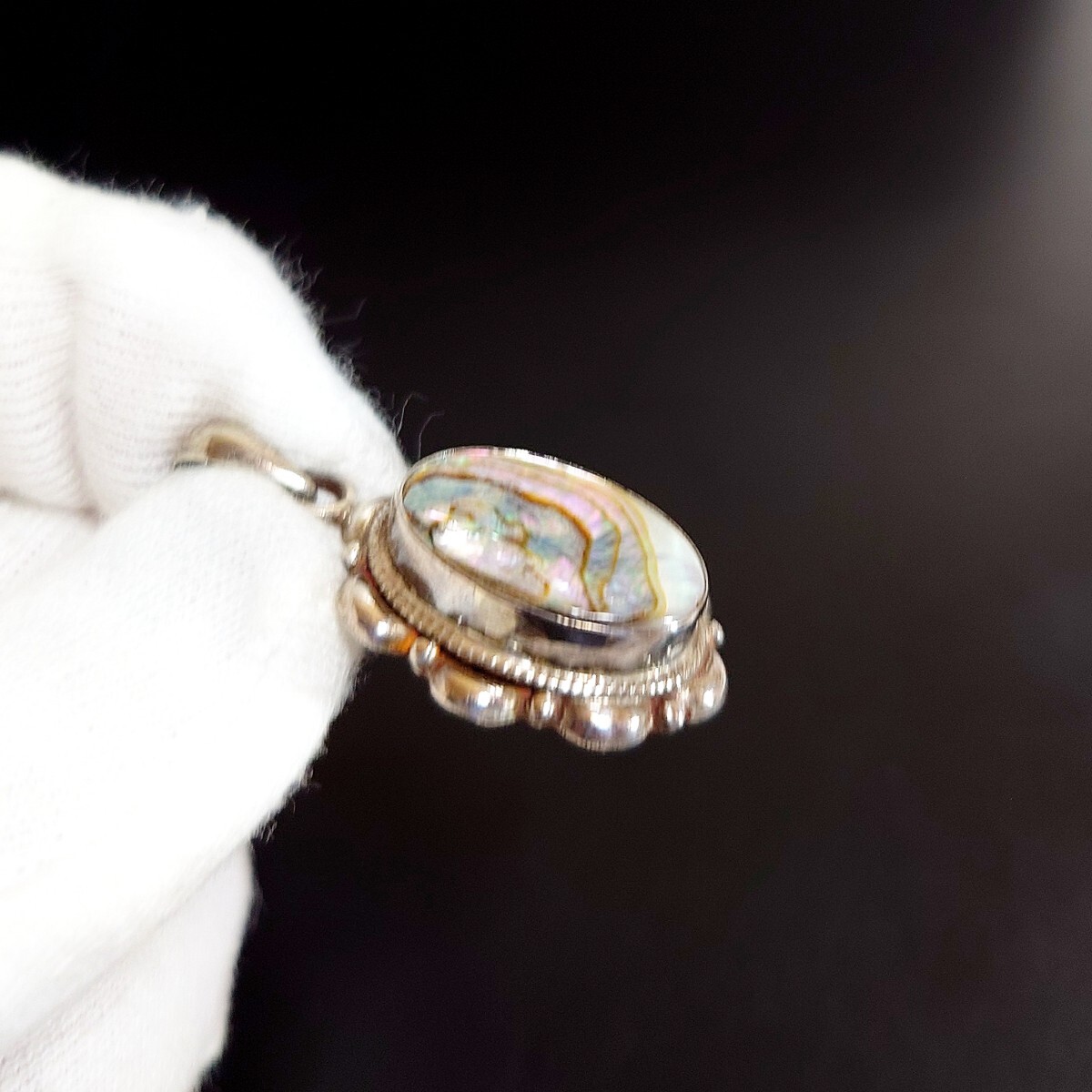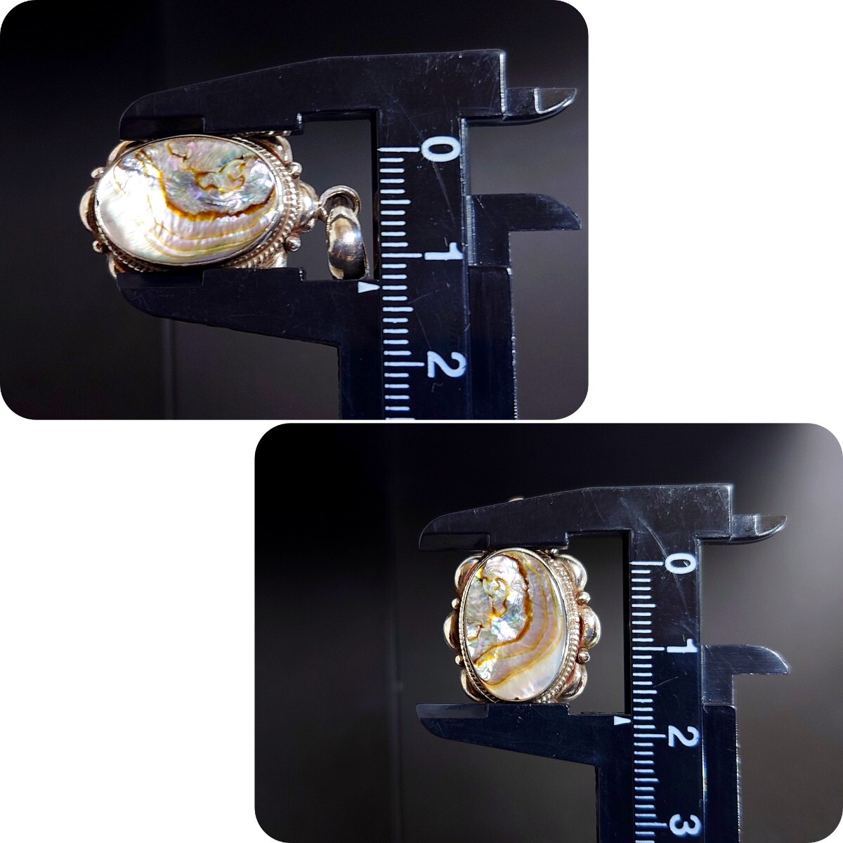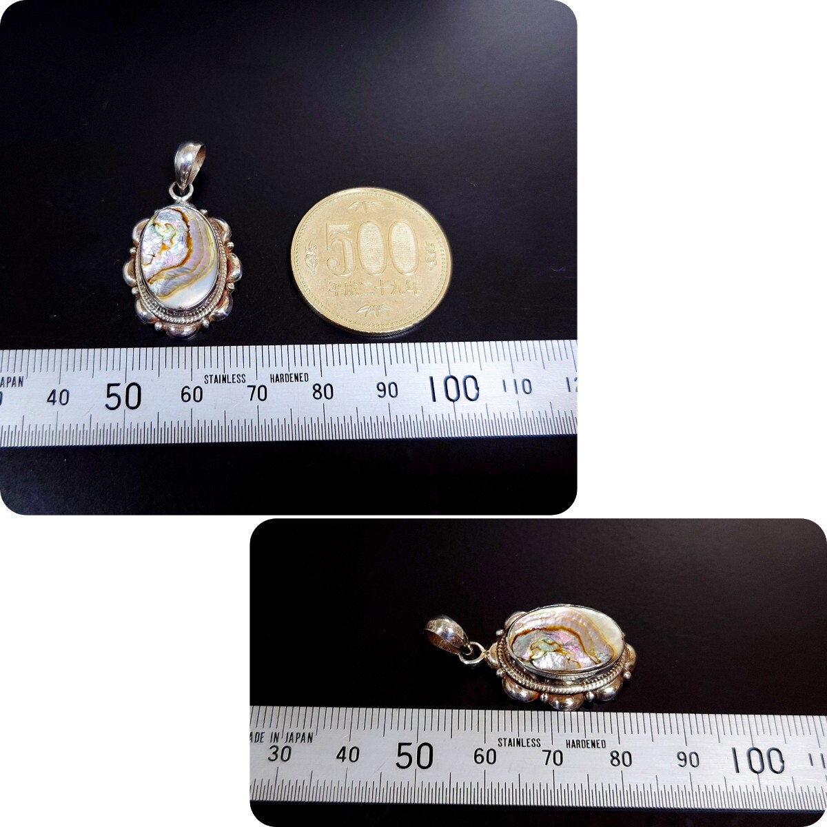 光りの加減や角度で天然貝の層から薄いピンク、シルバーっぽい色の変化が一部で見られます♪