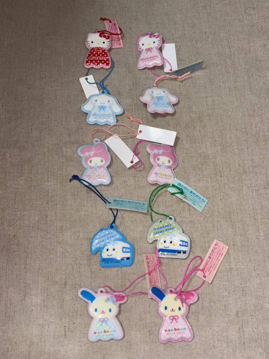 2005年の商品です。雨の日限定でサンリオショップでお買い物をして頂けるマスコットです。キティ・マイメロディ・シナモロール・ウサハナ・新幹線が各2個の合計10個です。