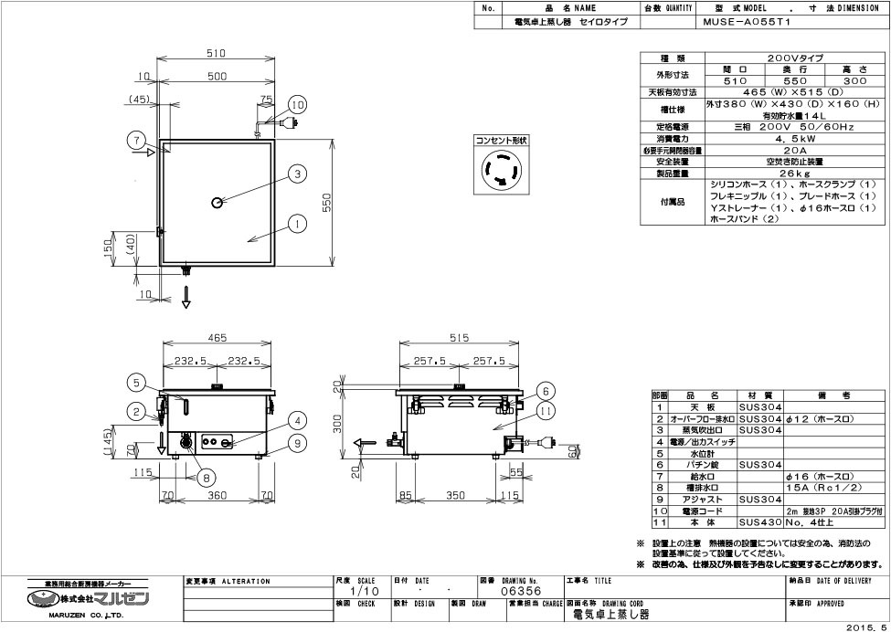 【業務用/新品】【マルゼン】 電気卓上蒸し器 MUSE-A055T1 幅510×奥行550×高さ300mm 【送料無料】