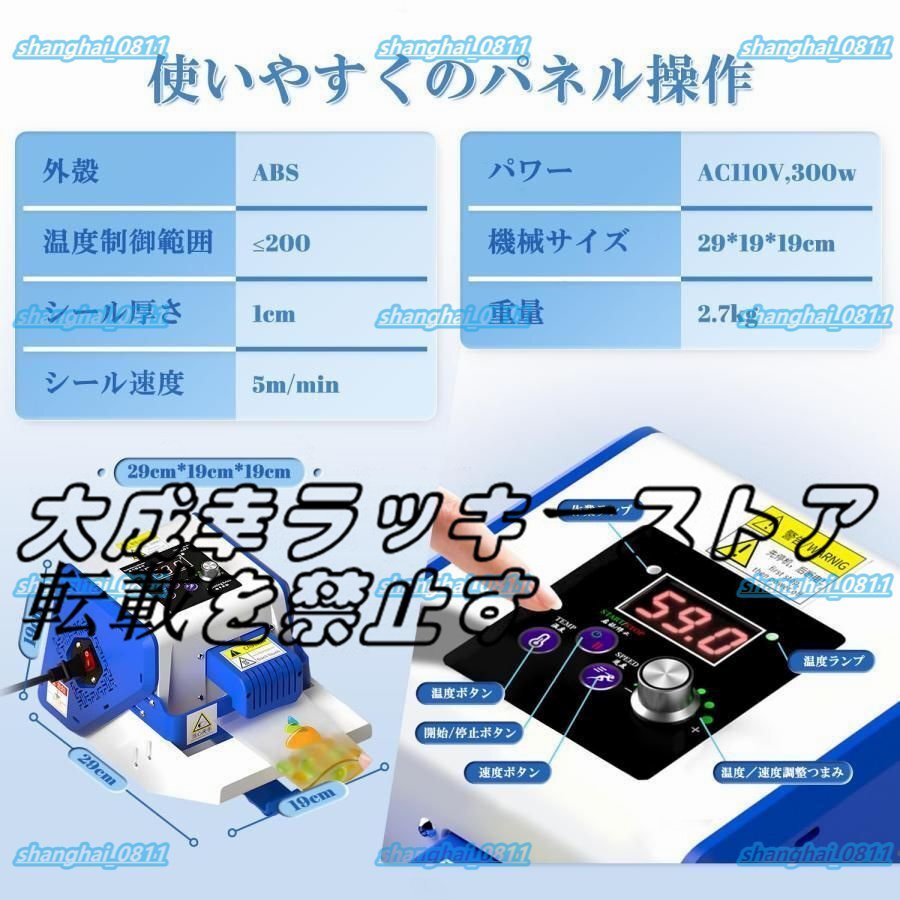 シーラー 業務用 卓上シーラー 5m/min デジタル表示 0-200℃ 小型 ローラーシール機 異なる厚さの袋に対応可能 簡単操作 全自動 フードシー