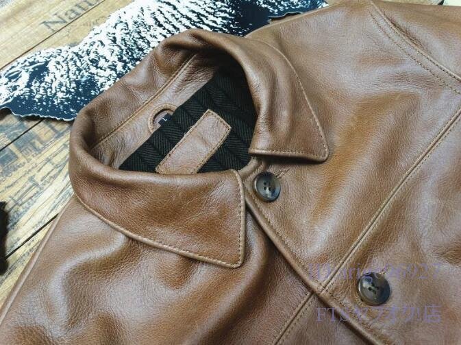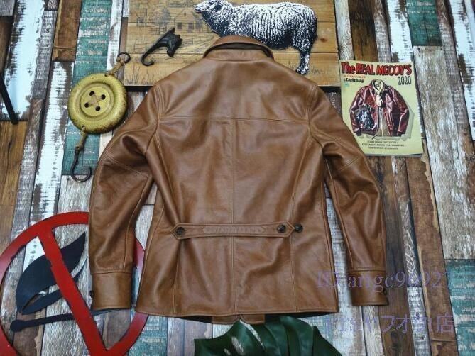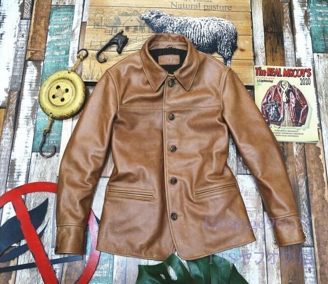 V287☆新品カウハイド50\'sカーコートナチュラルブラウンL(38)サイズ選択可ドライビングワークブレーキマンレザージャケット牛革
