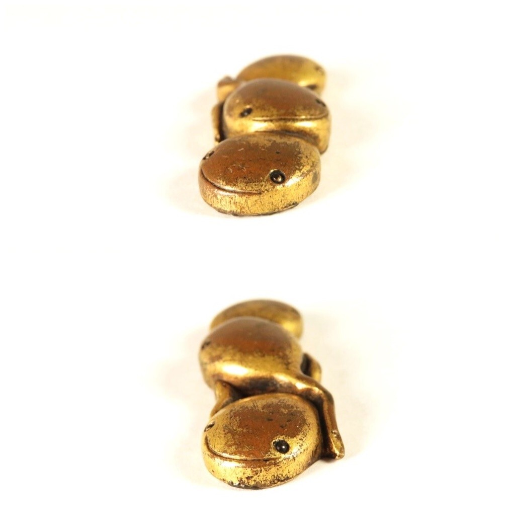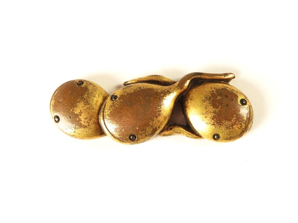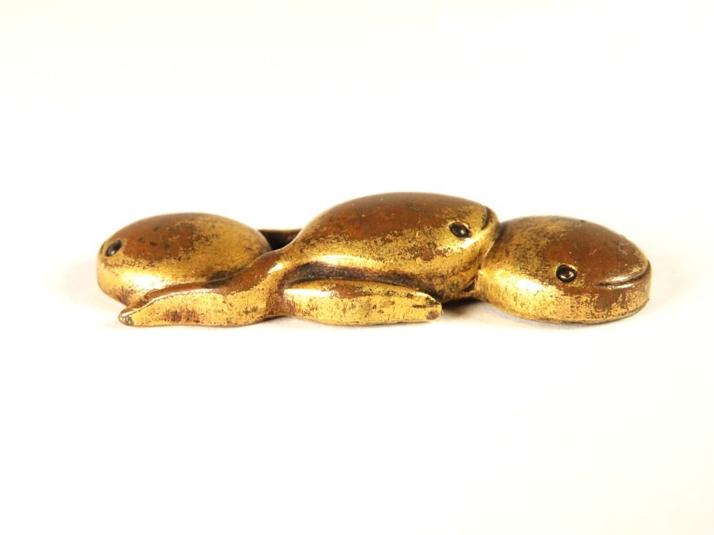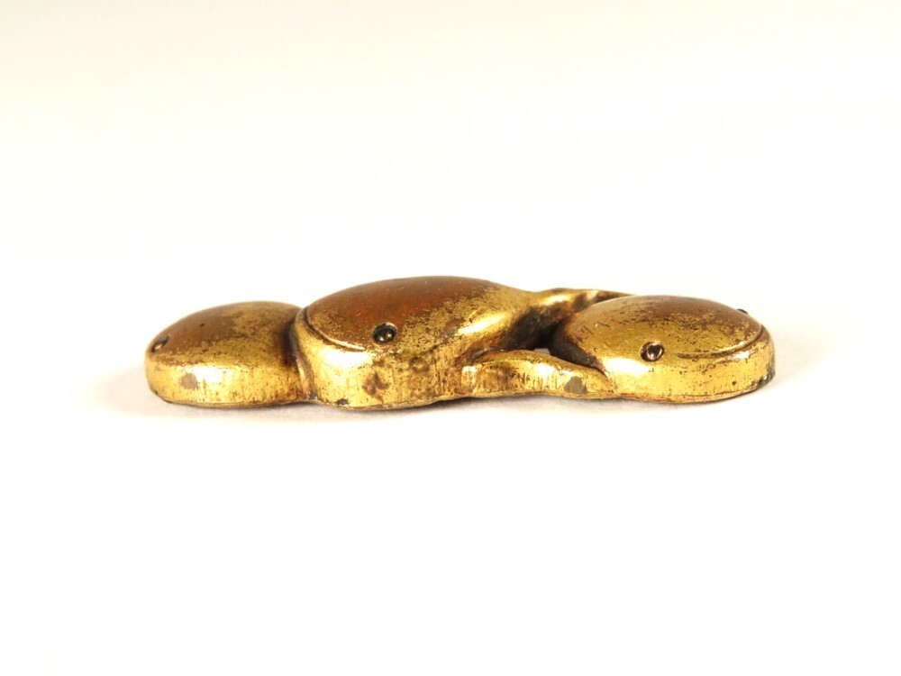 ●明治期 堤物 タバコ道具 銅 鍍金 おたまじゃくし 金具 重量4gになります。古い物ですが極力状態の良い作品を出品しておりますので是非ご覧ください。 【状態】 ●経年を考慮し状態はよいと思います。 【サイズ(約)】 ●3.2×1.1㎝ (素人寸法ですので、若干の誤差はお許し下さい) 【重量(約)】 ●4g 【領収書に関しまして】 領収書発行は致しておりません。 Yahoo!かんたん決済手続き完了時の確認画面をプリントアウトして領収書としてお使い下さい。 ※領収証として税務署に認められております。 ご了承のうえでのご参加をお願いいたします。 |