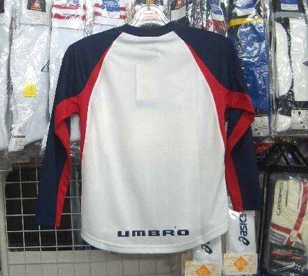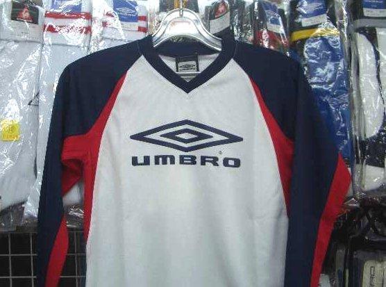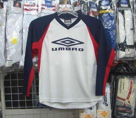 アンブロ UBA7747Jかっこいい長袖白×紺 ホワイト×ネイビー150cm ジュニア キッズ 子供 umbro 新品 レトロ 即決価格/