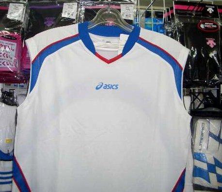 アシックス XS6023ノースリーブシャツ 白×青 ホワイト×ブルー Mサイズ asics 新品 レトロ 即決価格/