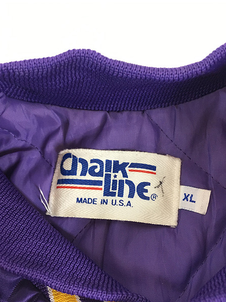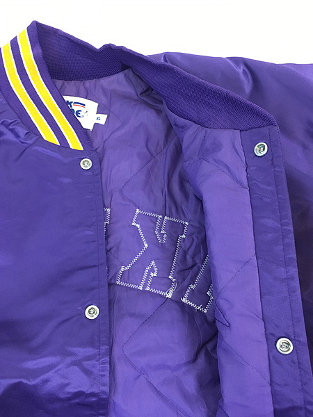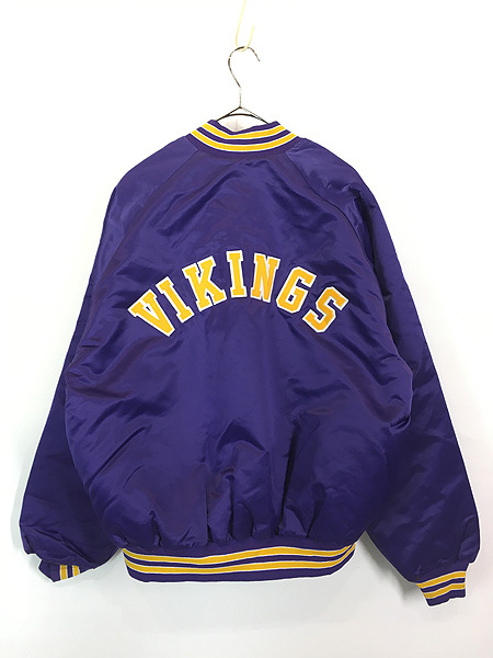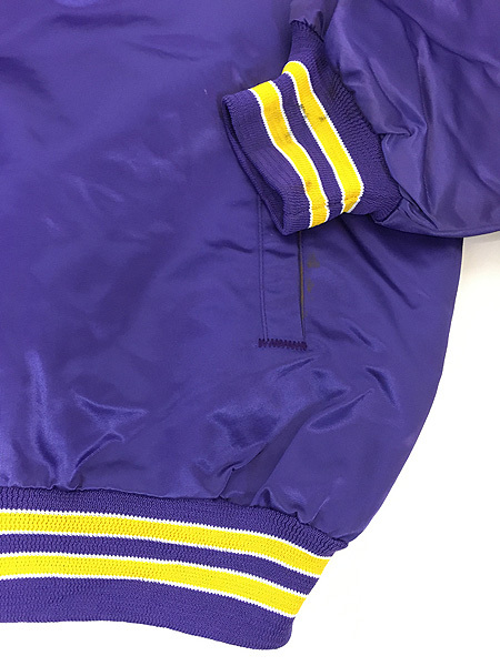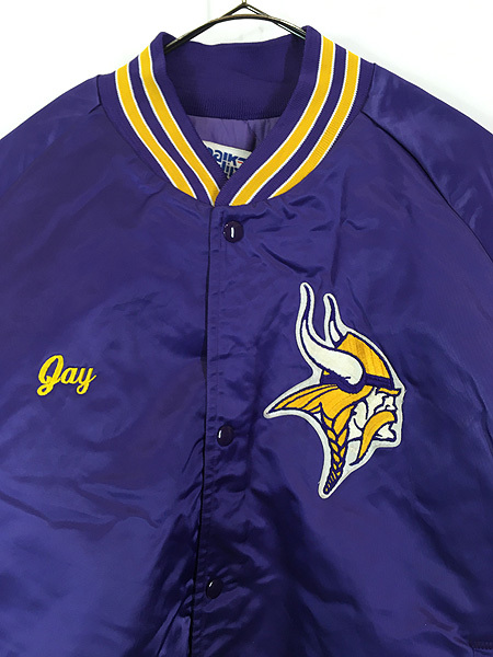アメリカプロアメフトチーム「ミネソタ・バイキングス」のツヤのあるサテン生地のナイロンジャケット。