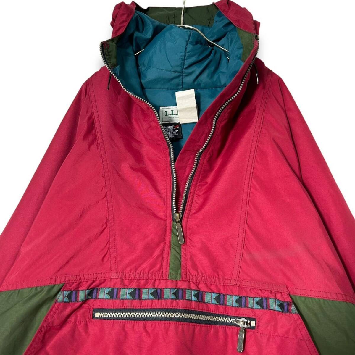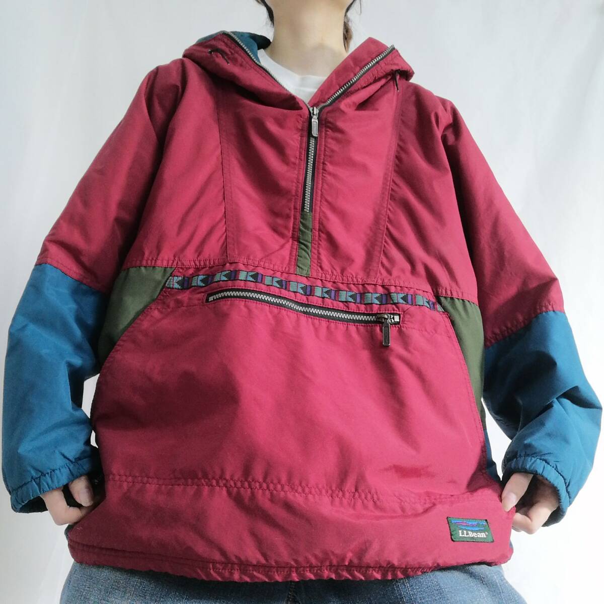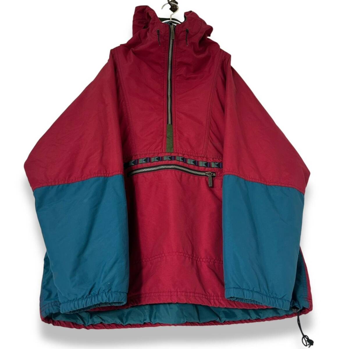 商品名 : 古着 80年代 USA製 L.L.bean エルエルビーン アノラックパーカー 中綿 シンサレート ハーフジップ チロリアンテープ マルチカラー 赤 ビンテージ オールド