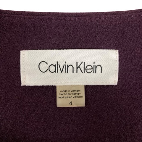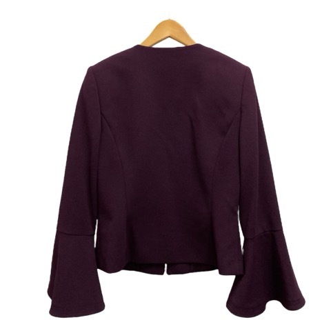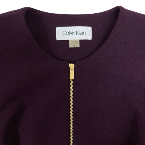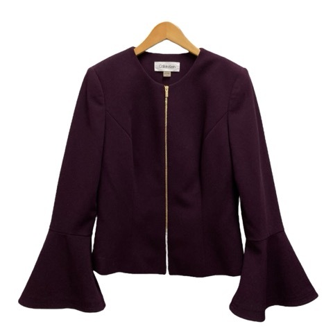 カルバンクライン CALVIN KLEIN ノーカラージャケット クルーネック フレア 無地 裏地 長袖 4 紫 パープル レディース