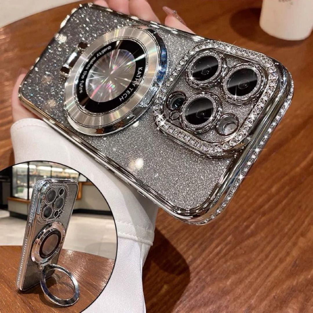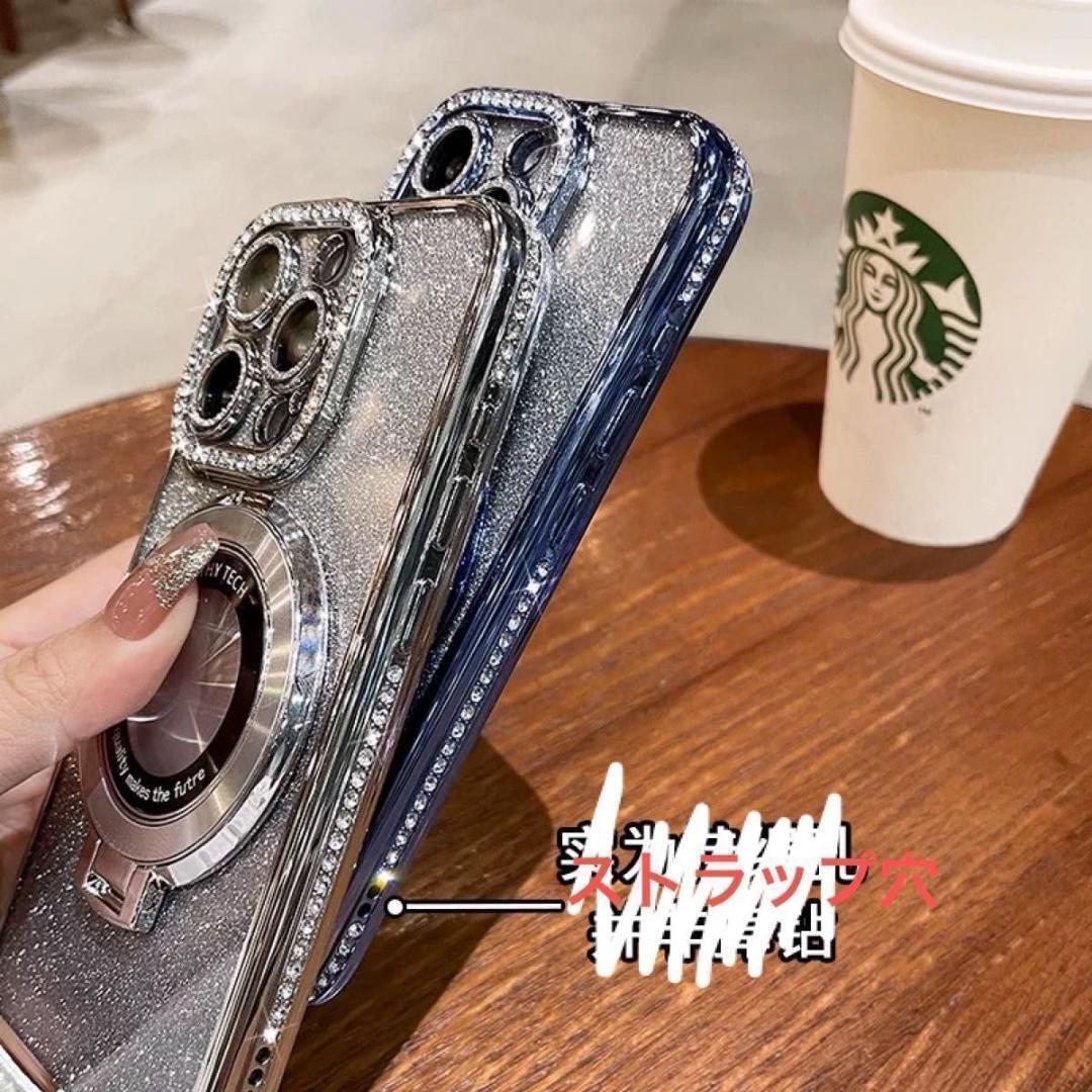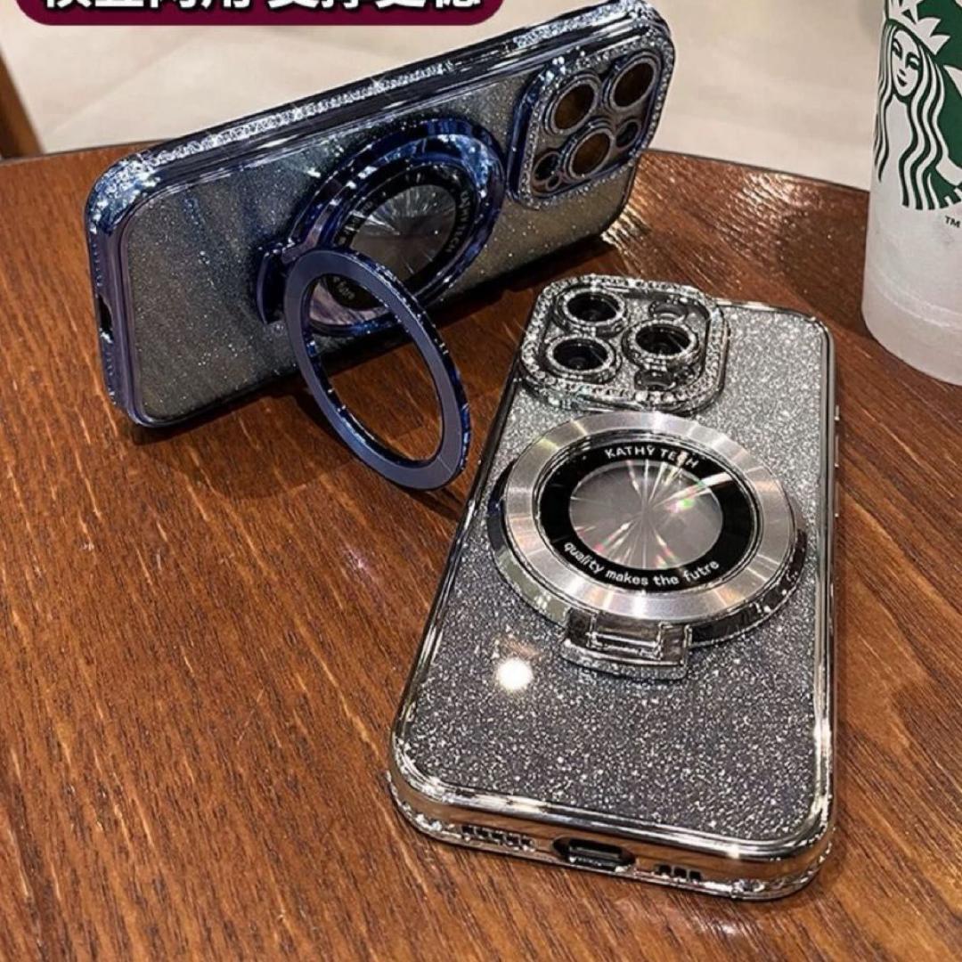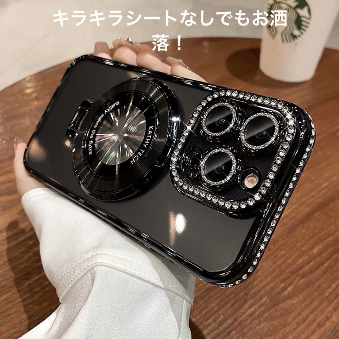 ①【キラキラリング付き・スタンド機能】後ろで嵌め込み式キラキラリング付き特にキラキラしていて綺麗です。水平スタンド機能を使用して、お好みの角度でビデオを見ることができます。あなたのiPhone を完璧な角度でロックし、両手を解放して他のタスクを処理し、効率を高めることができます。