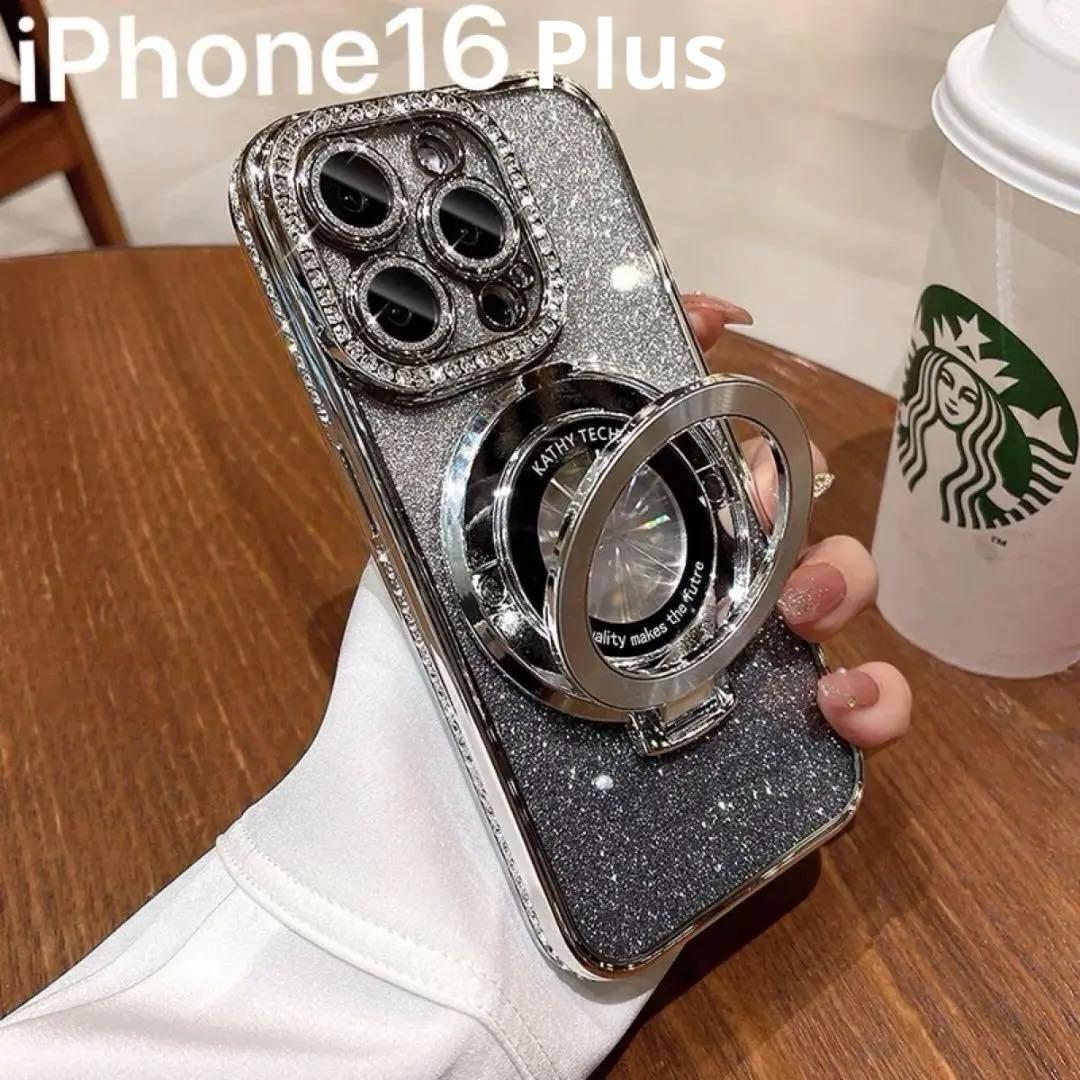 iPhone 16 Plusケース、スタンド付き、MagSafe充電対応、レンズ保護機能付き。写真1枚目