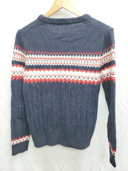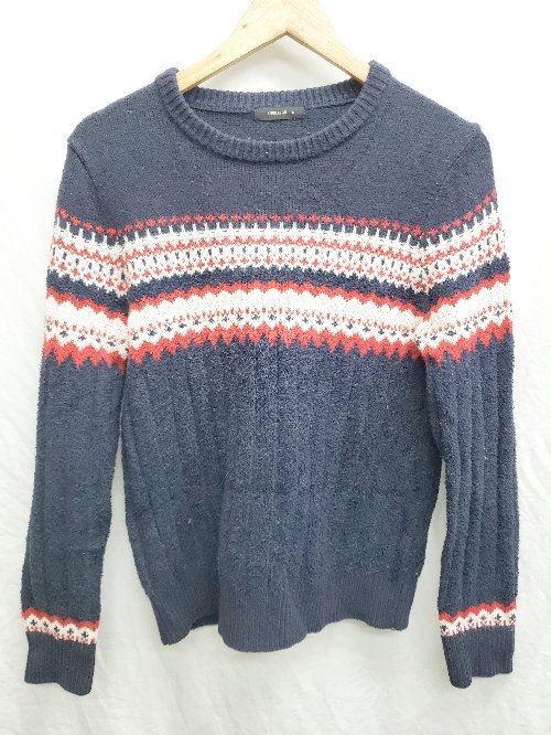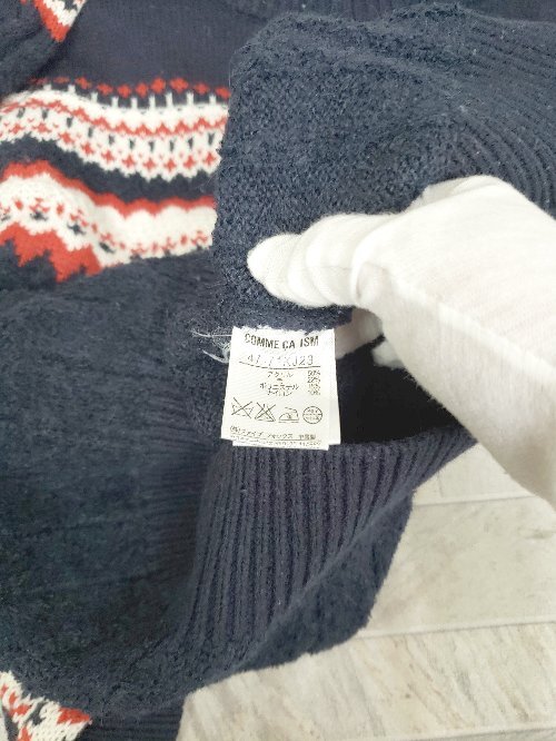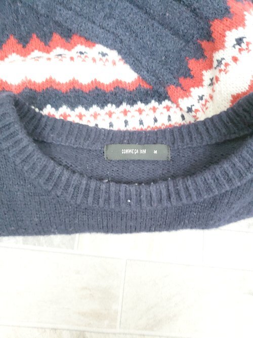 ◇ COMME CA ISM コムサイズム ゆったり 長袖 ニット セーター サイズM ネイビー レッド ホワイト レディース メンズ P