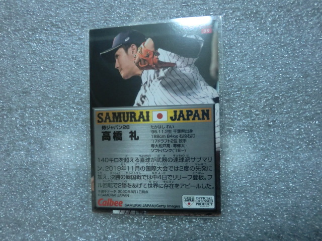 カルビー プロ野球チップス 侍ジャパン 2020 09 高橋礼 金箔サインです。