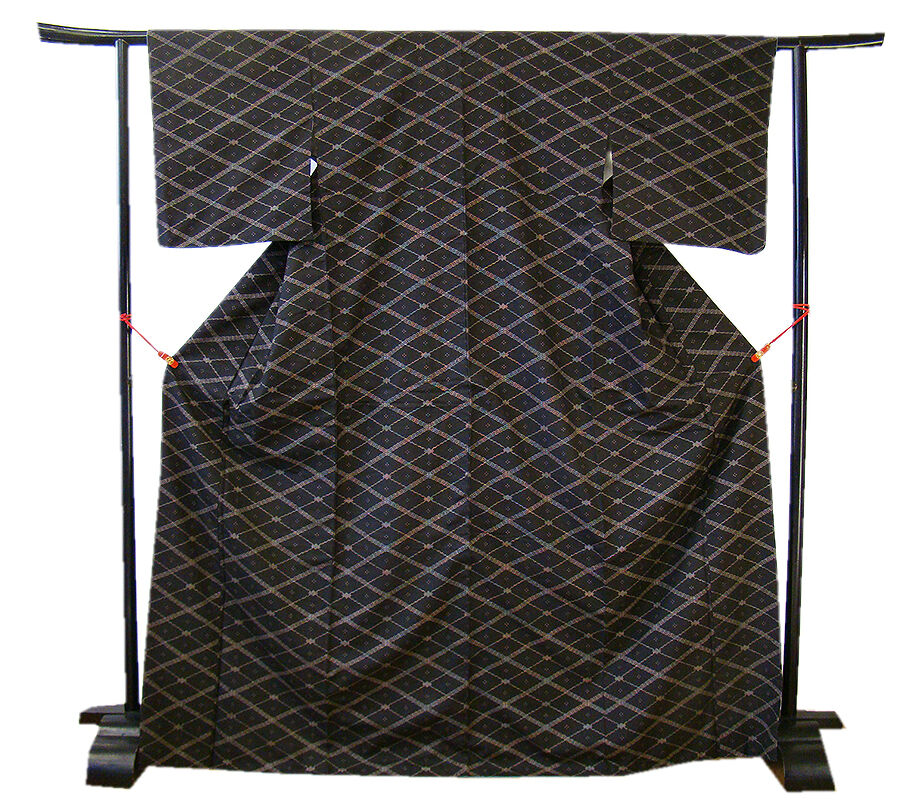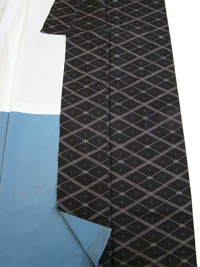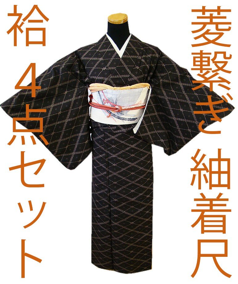 ★美品◆帯や小物次第で様々な表情をお愉しみ頂ける逸品!! 菱繋ぎの粋な紬着尺&なごや帯&帯揚げ・帯〆の豪華4点セット(正絹) U328★ | |