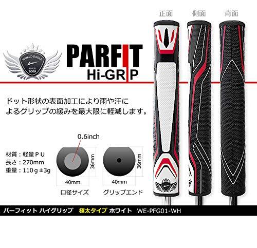 「WORLD EAGLE PARFIT Hi-GRIP グリップ 極太グリップ 110g ±3g」▼4571394150733▼(商品説明)・ホワイト 長さ:270mm 35407・口 径:0.6インチ・材 質:軽量PU・長 さ:27mm・重 量:110±3g・サイズ:40mm×36mm手打ちを完全シャットアウト 方向性が抜群すぎるぐらいに安定します どっと形状の表面加工により雨や汗によるグリップの緩みを最大限に軽減・いつもカップをオーバーしてしまう・なかなか方向性が安定しない・なぜかカップの右にボールが行く