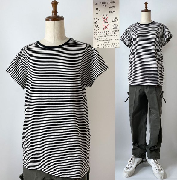 ★【国内正規品 日本製 背面タグ取れ有】n.hoolywood ミスターハリウッド 951-CS10 pieces コットン100% ボーダー 半袖 Tシャツ 38 白×黒