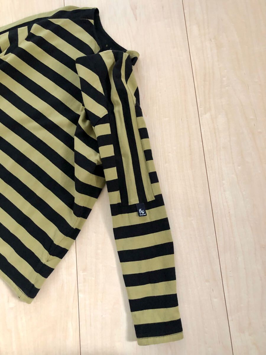 無地とボーダーのリバーシブルで着用可能なカットソー。