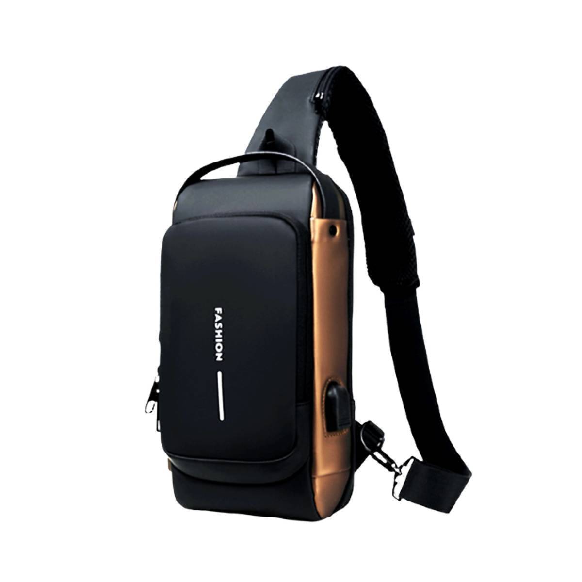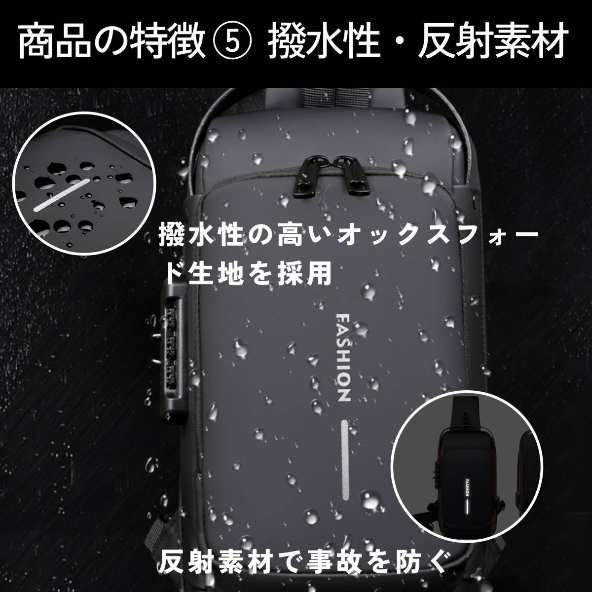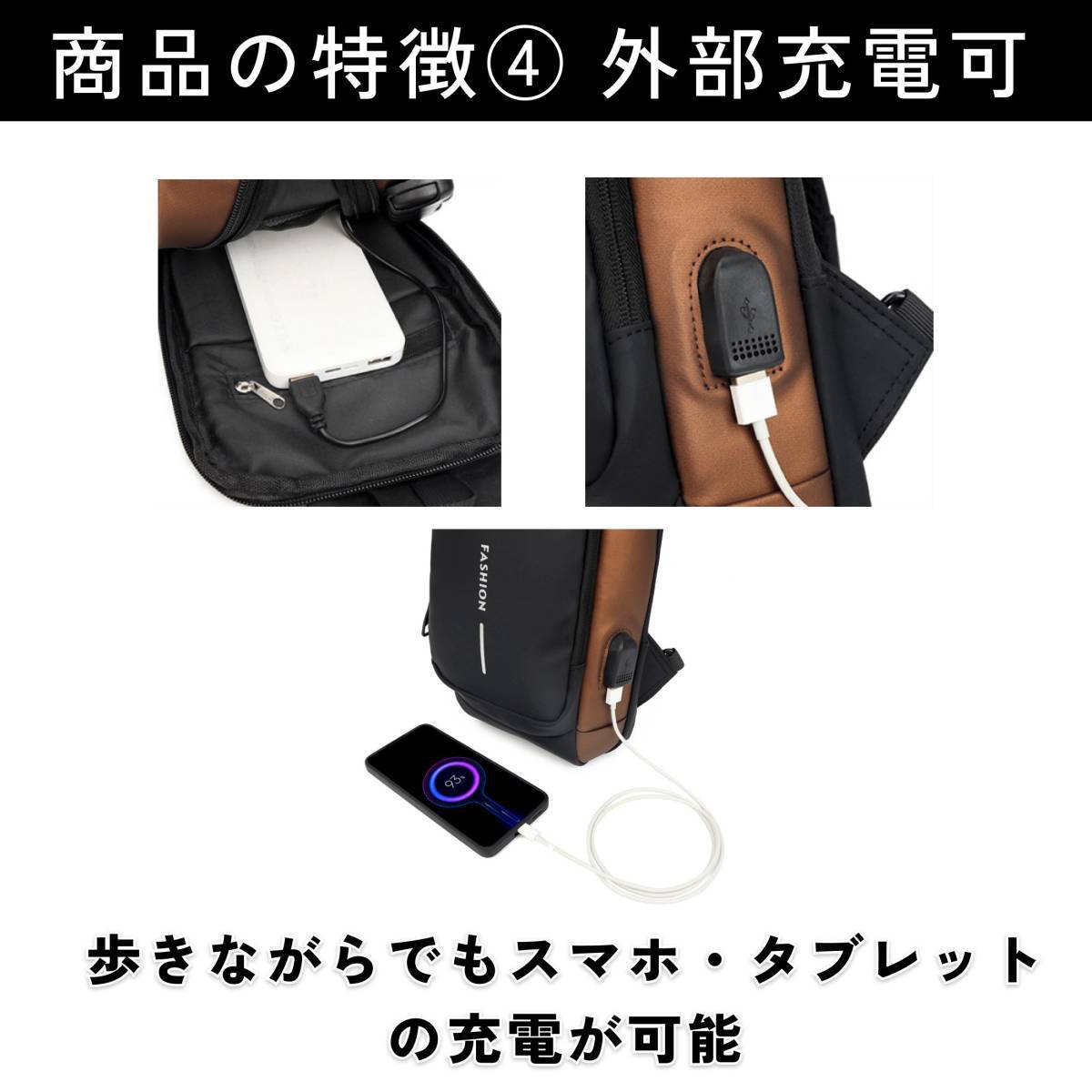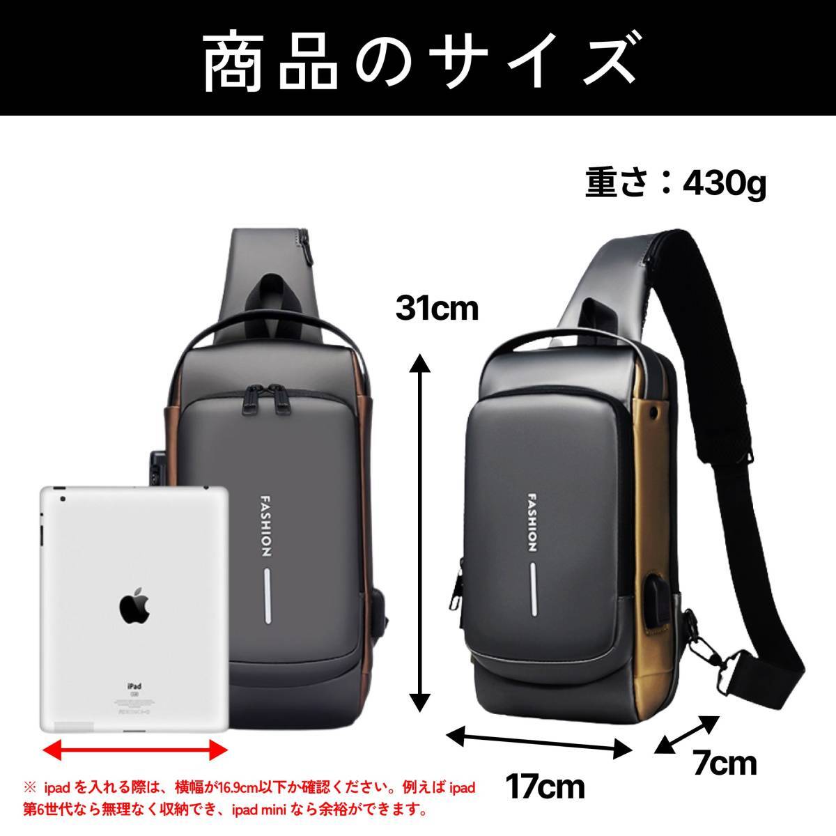 ボディバッグ ショルダー バッグ ブラック/ブラウン スポーツバッグ 斜めがけ USBポート 軽量 大容量 撥水 自転車 バイク 旅行 通学
