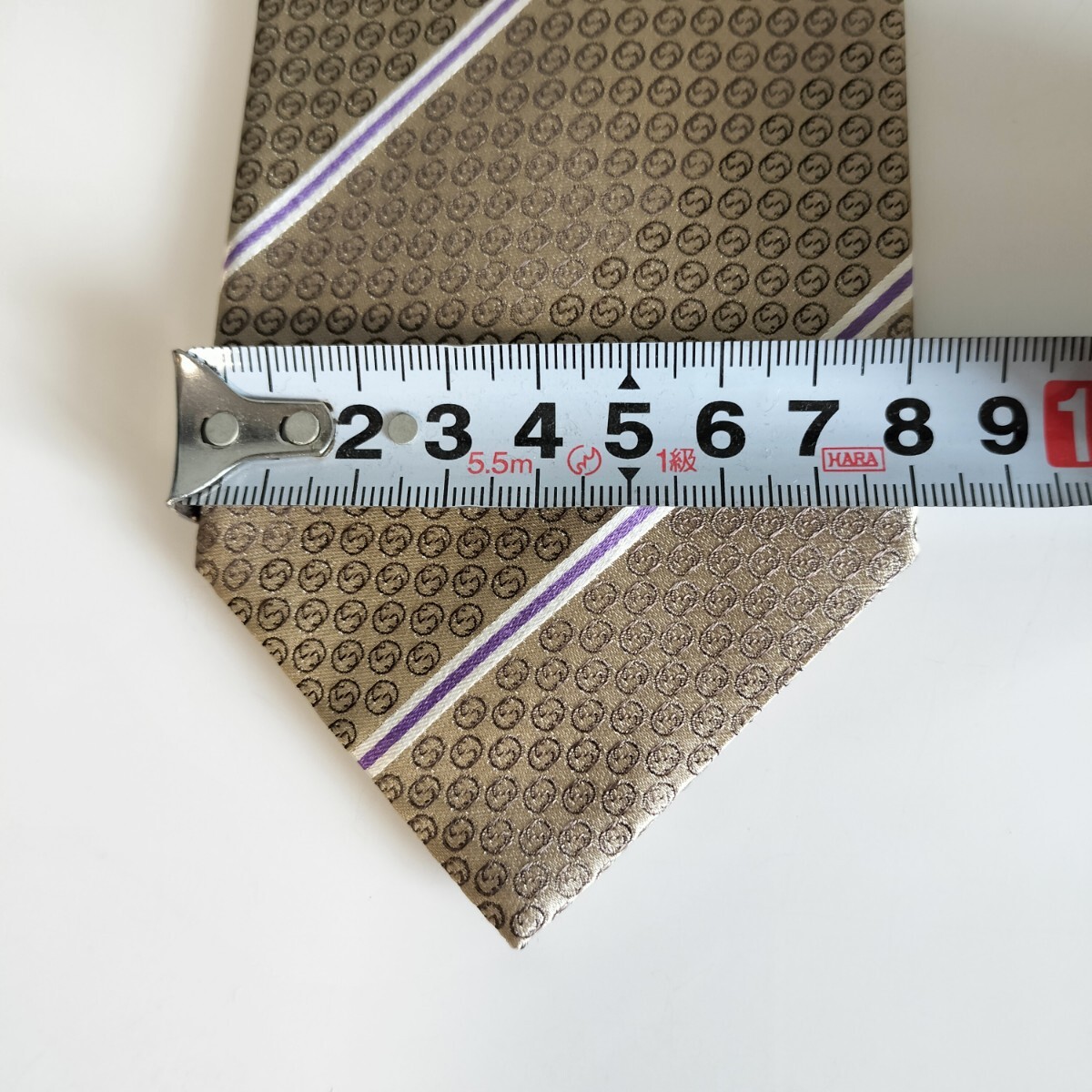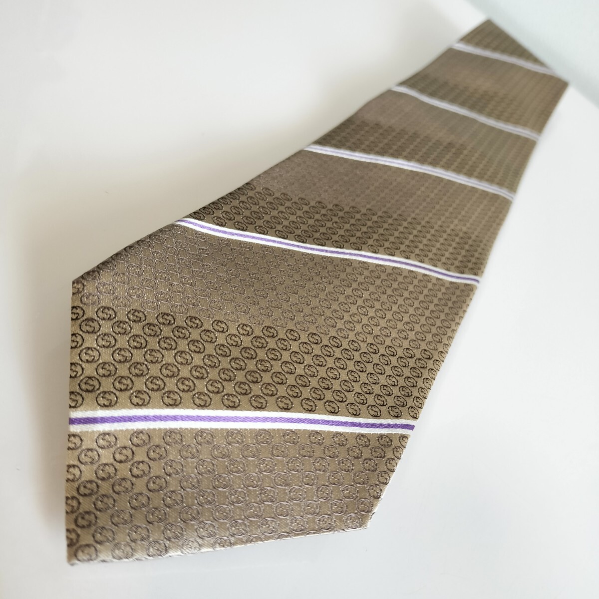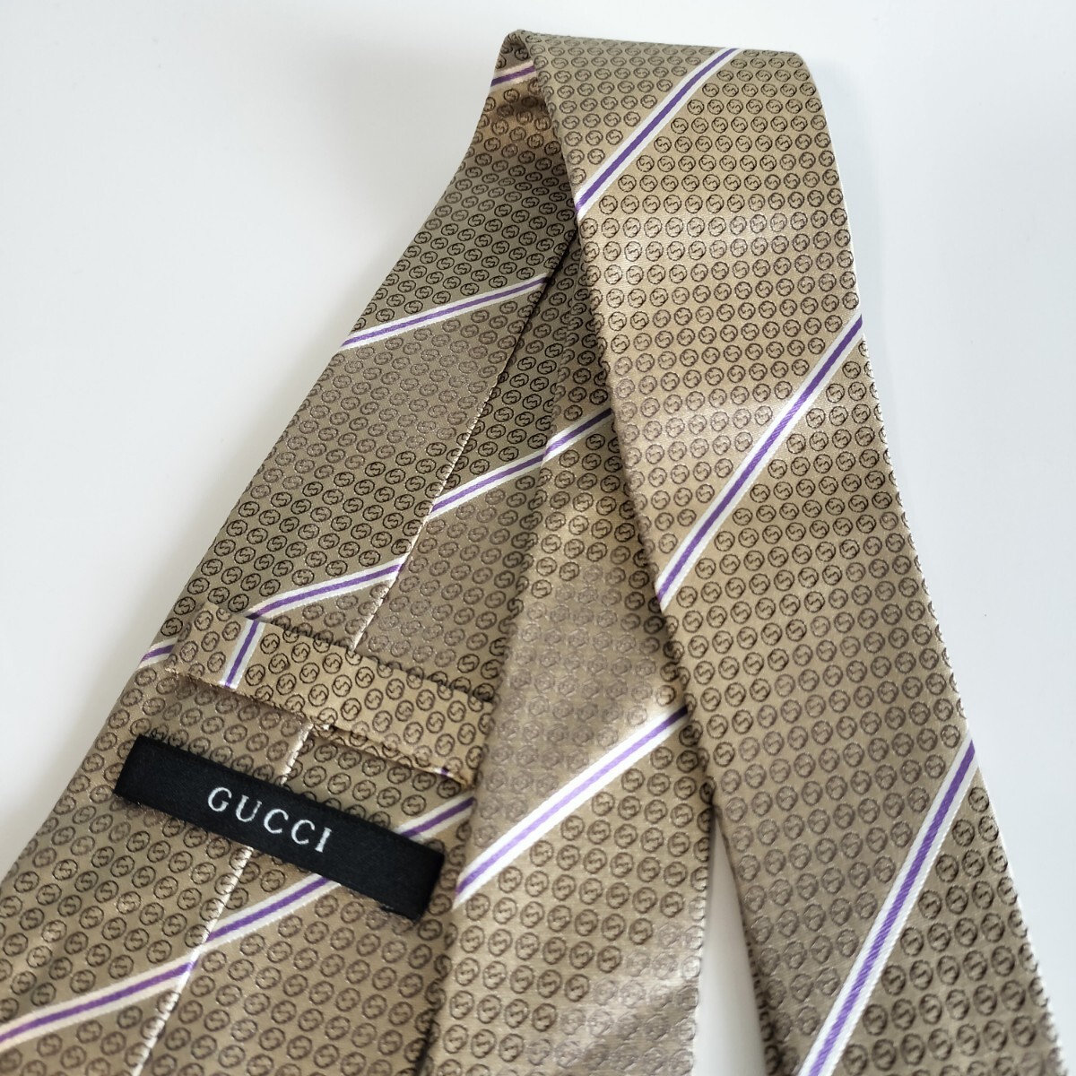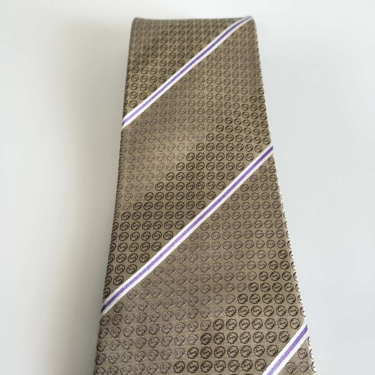 ベージュマイクロGGロゴ紫線ストライプネクタイ