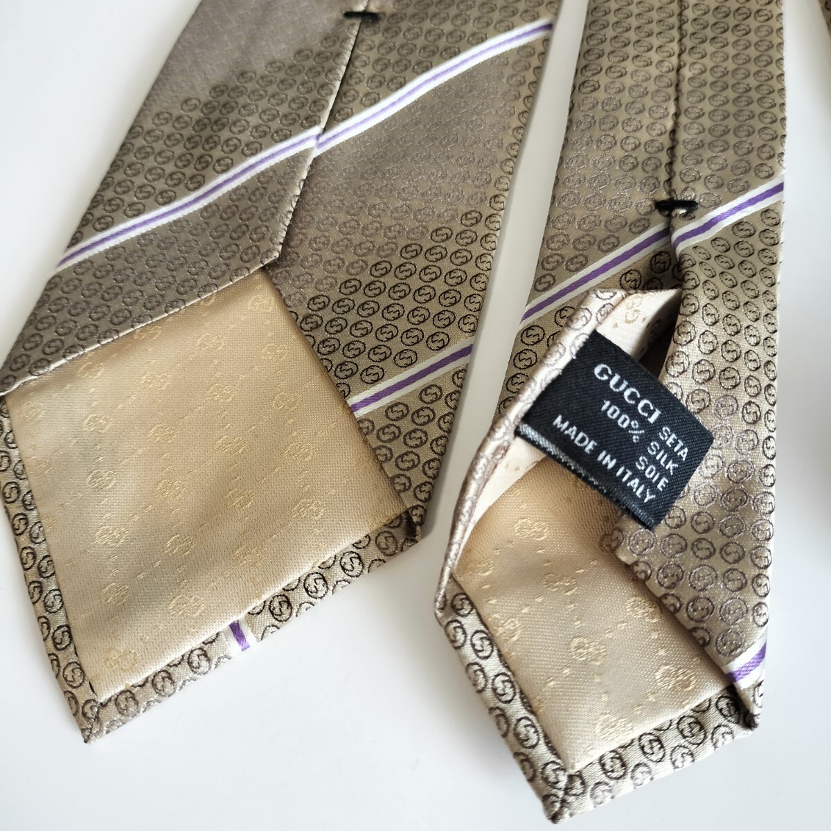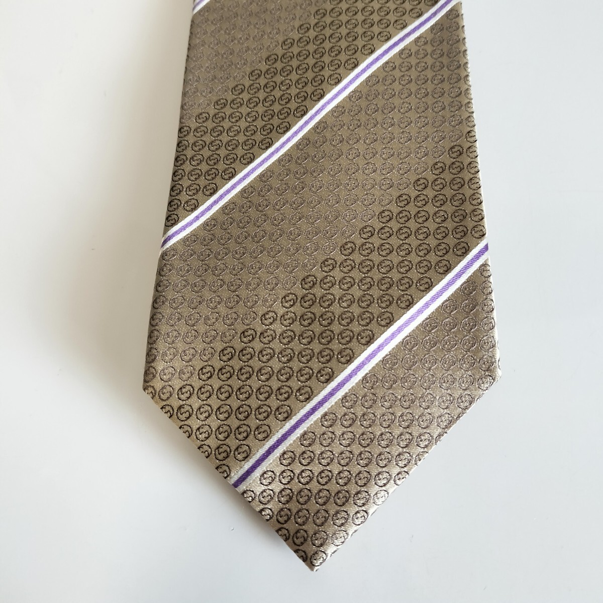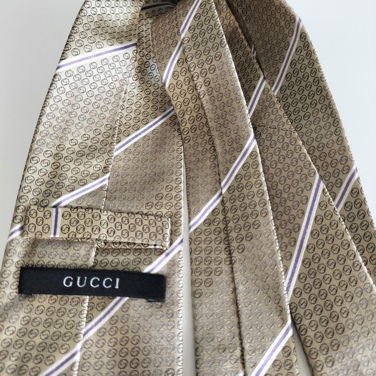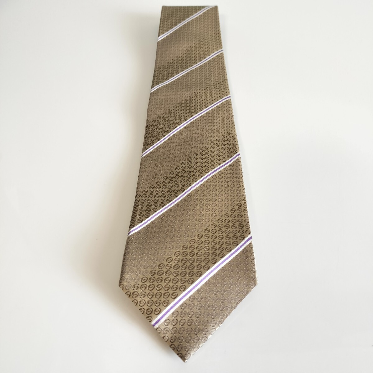 ベージュマイクロGGロゴ紫線ストライプネクタイ