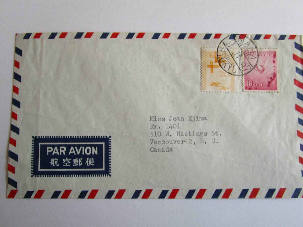 1、欧文櫛型印NAHA9・6・57RYUKYU消(画像3参照)→カナダ・バンクーバー宛。