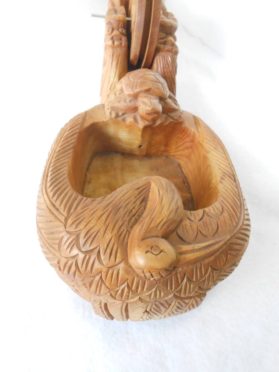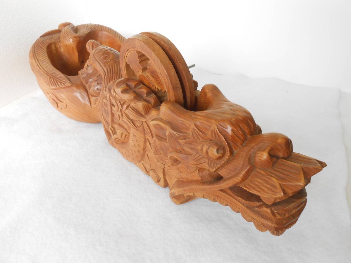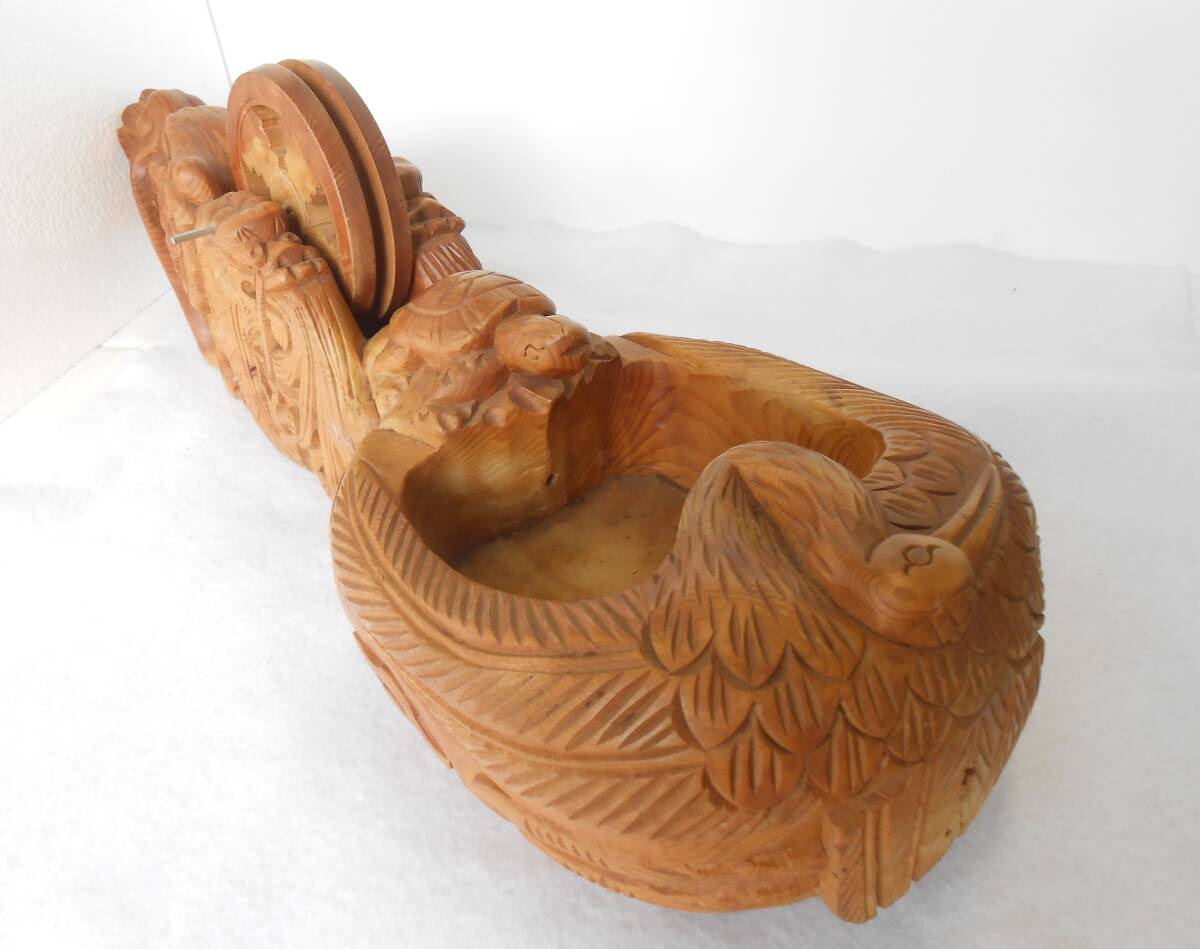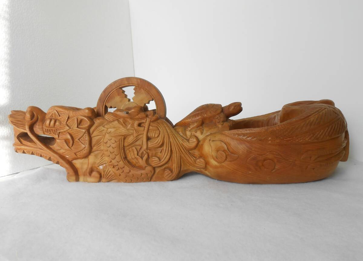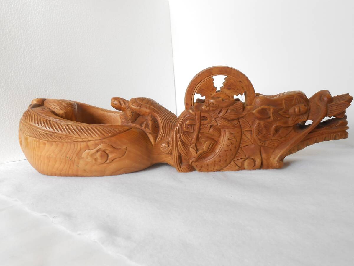 商品説明 | 木製の大きな墨壷です。 鶴と亀それに龍が彫刻されています。 実用品ではなく、置物として作られた品物だと思います。 かなり前(30年ぐらい)に購入し、そのまましまっていましたので、 きれいな状態です。写真でご確認してください。 全長 610mm(二尺) 高さ 145mm 壷車 130mm |