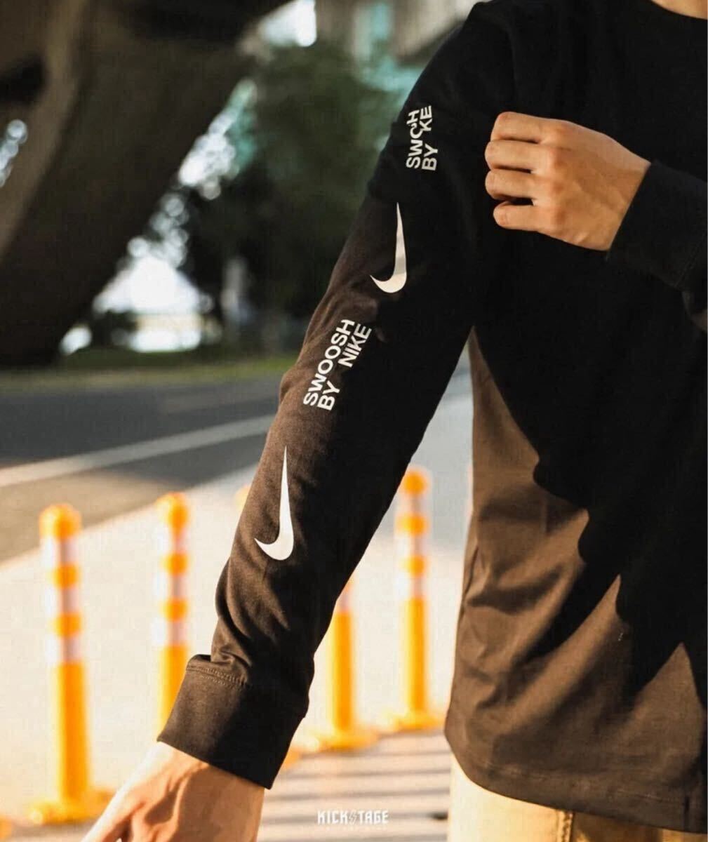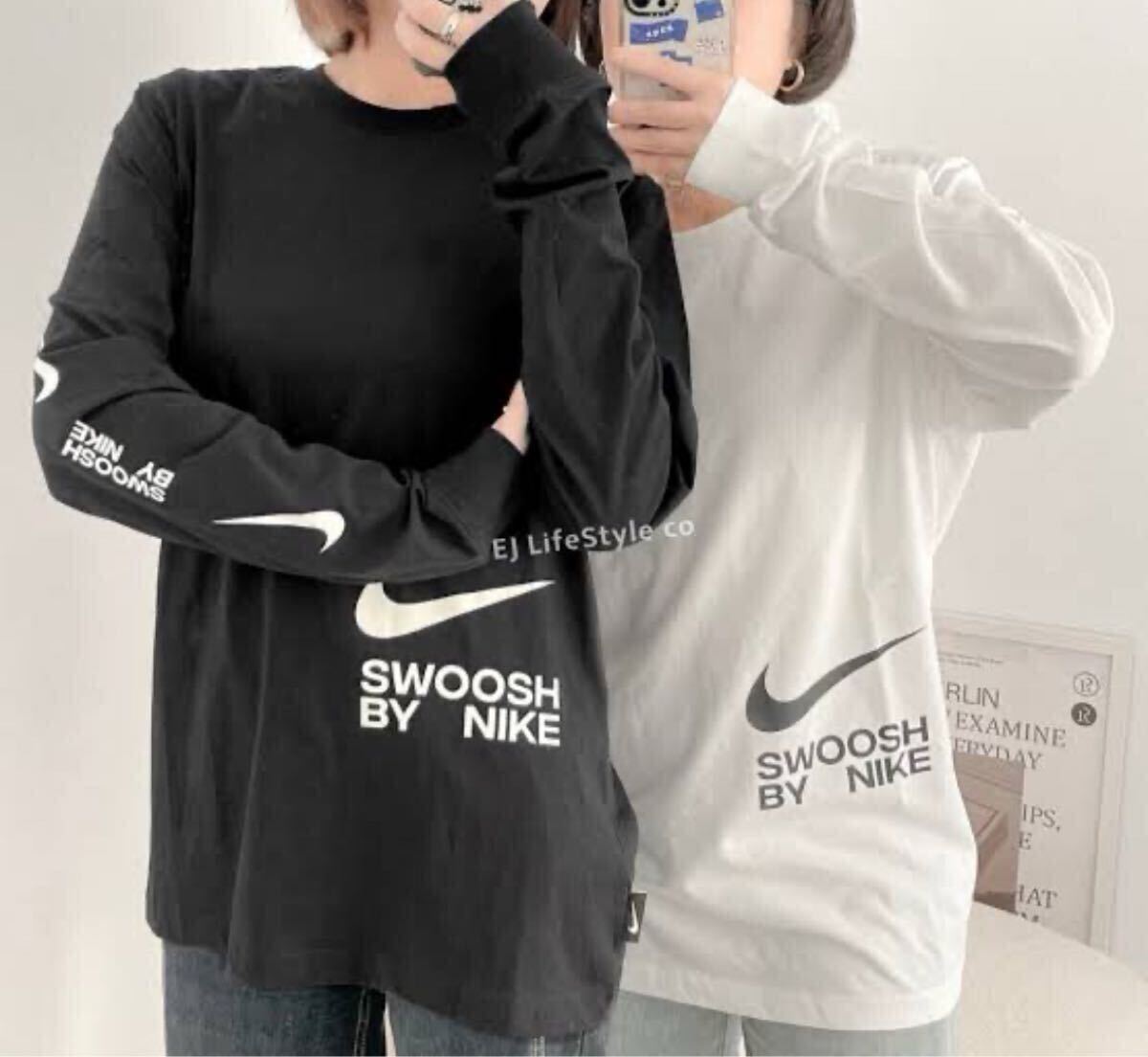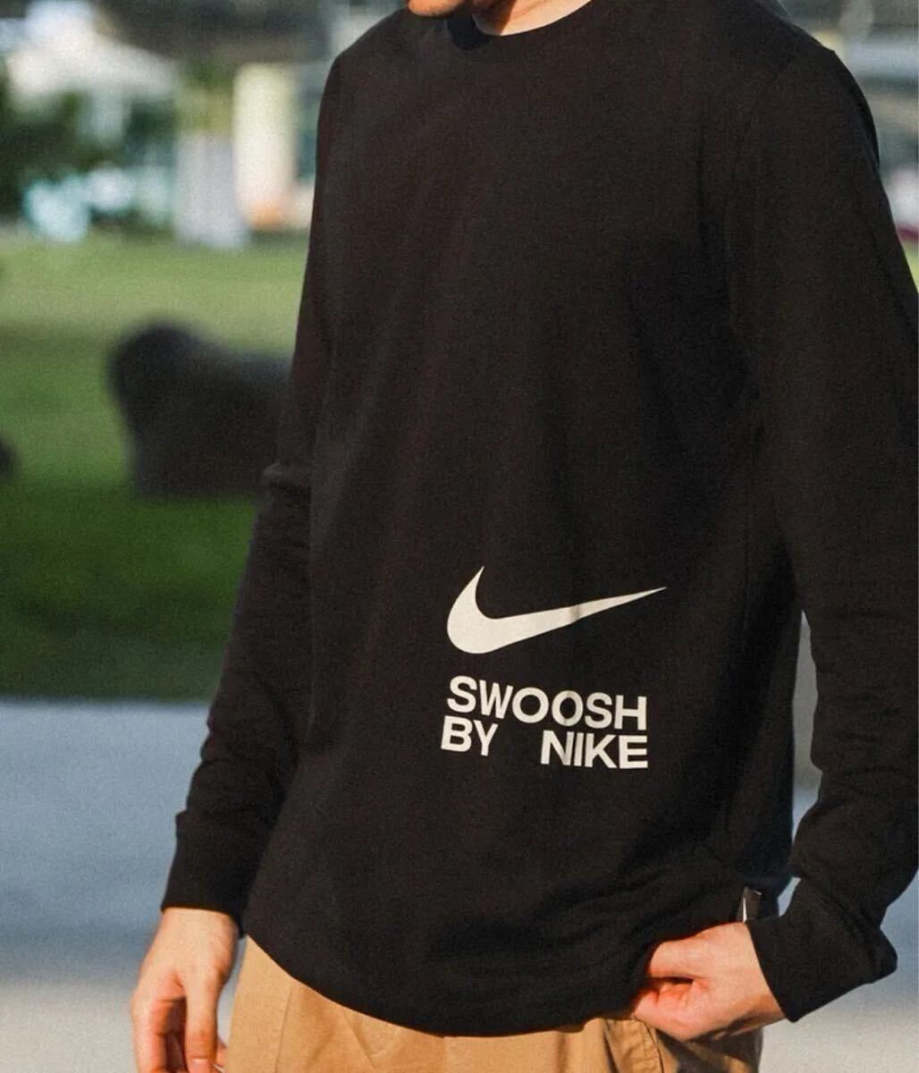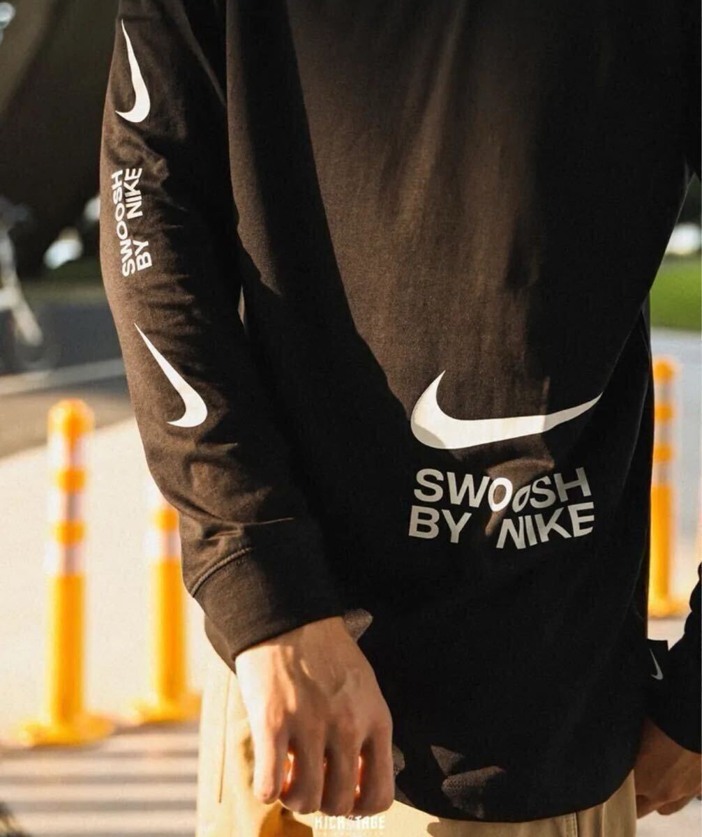 ●このソフトな長袖コットンTシャツでスウッシュを祝福しよう。ボディと袖に「Swoosh by Nike」のグラフィックをあしらい、サイドの縫い目には織りのフラッグラベルをあしらった。お気に入りのジョガーパンツとナイキのスニーカーを合わせれば、スウッシュを前面に押し出したクリーンなスタイルが完成。