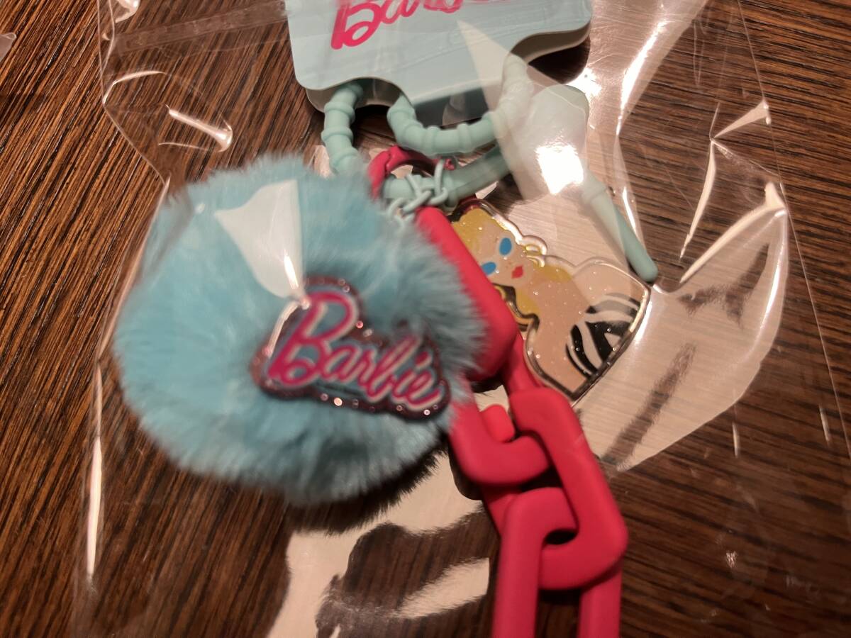 新品 マテル社 公式 Barbie バービー ファー付きストラップ  水色 チャーム付き ラメ加工