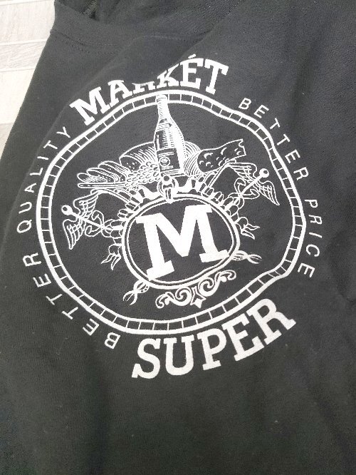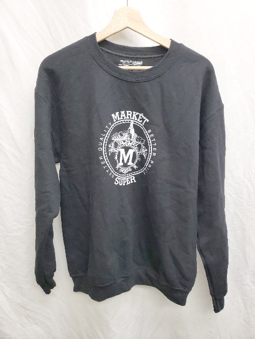 ◇ ⊇ GILDAN SUPER MARKET 裏起毛 ロゴ 長袖 スウェット トレーナー サイズM ブラック メンズ P