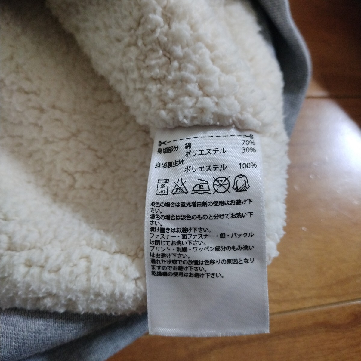グレーボディのパーカーに胸元、バックには刺繍、身頃裏地部分にはボア仕様で保温性も高くこれからの時期におすすめの一着です。シンプルでかなりいい雰囲気です。