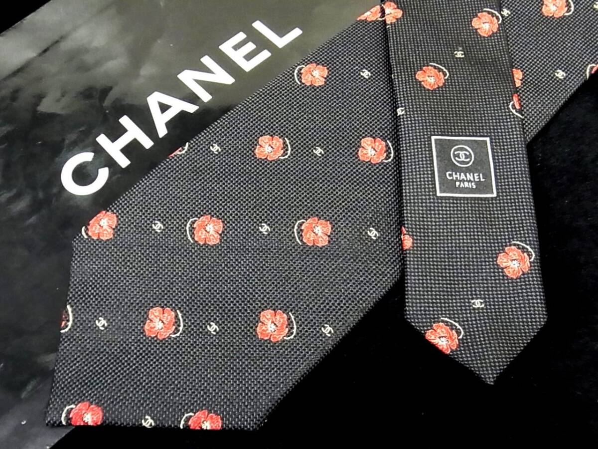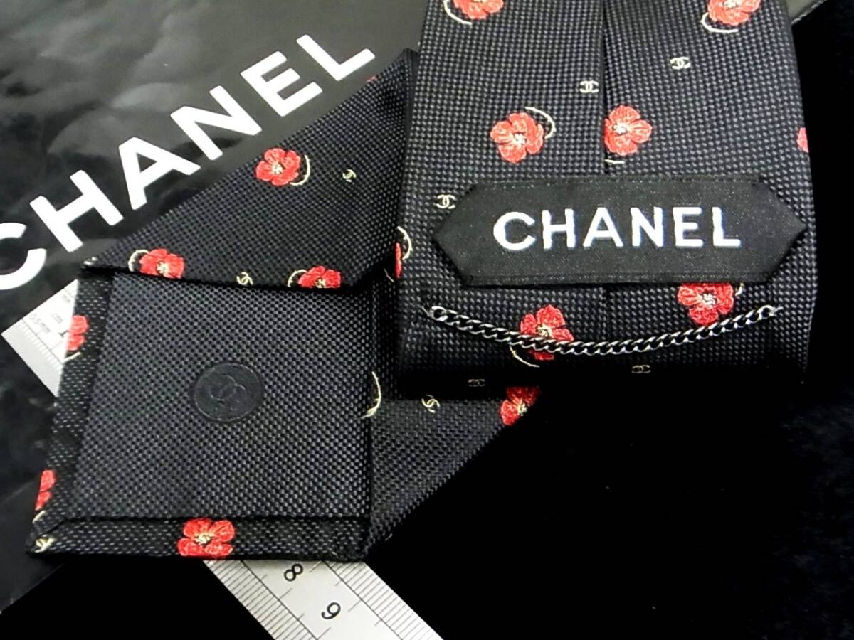 ★*:.【新品N】0397 シャネル【CHANEL】 総CCロゴ柄/刺繍花 ネクタイ★