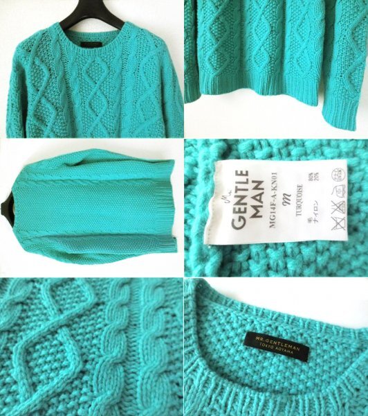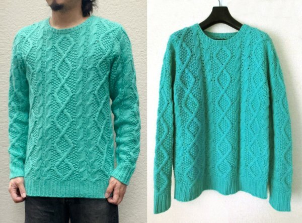 MR.GENTLEMAN FISHERMAN CREW NECK SWEATER M ミスタージェントルマン フィッシャーマンク ルーネック セーター ニット TURQUOISE